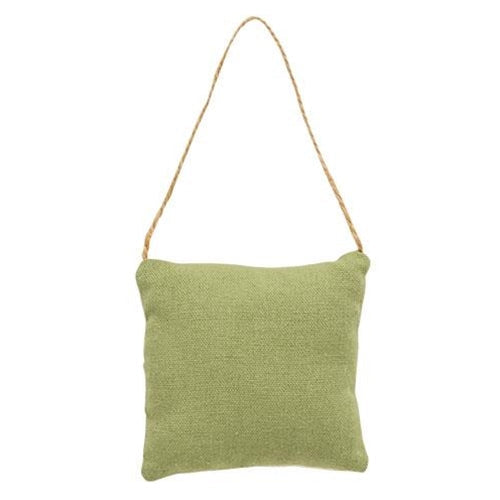 Apple Pillow Ornament is a stuffed pillow ornament with a red felt apple in the center. Ornament comes ready to hang by a jute string and it has a white front for contrast and a green back for detail. Measures 3.25" high by 3.25" wide by 1" deep.