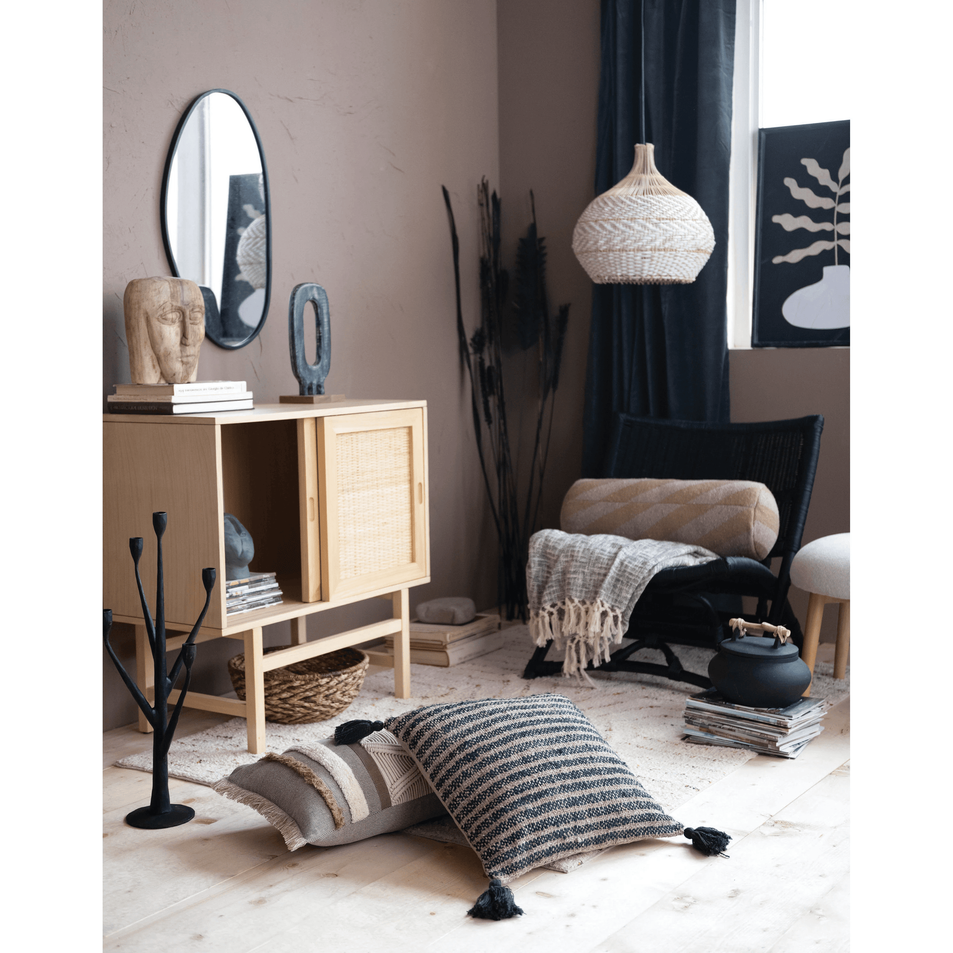 Elevate the ambiance of your space with our Decorative Terracotta Container. This rustic, boho-inspired piece exudes natural beauty with its matte black finish and driftwood handle. Perfect for storing and displaying your favorite treasures.