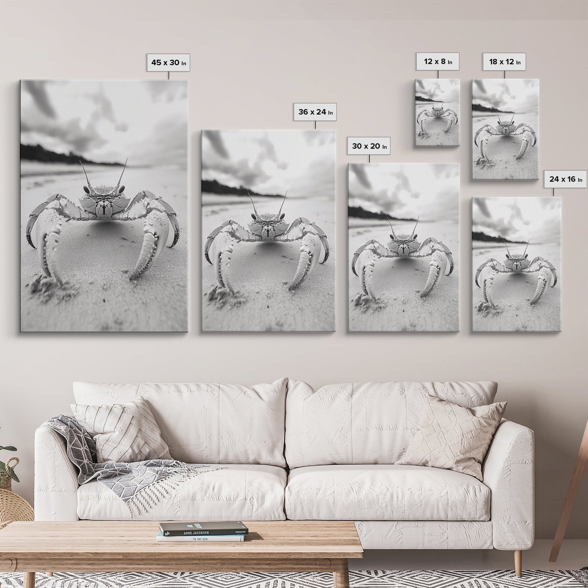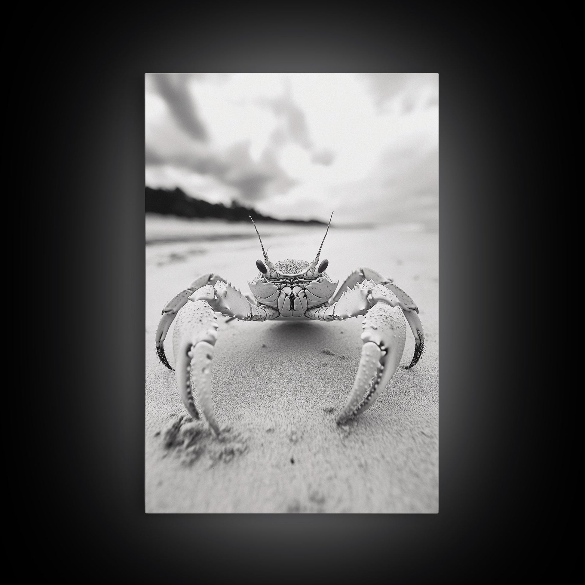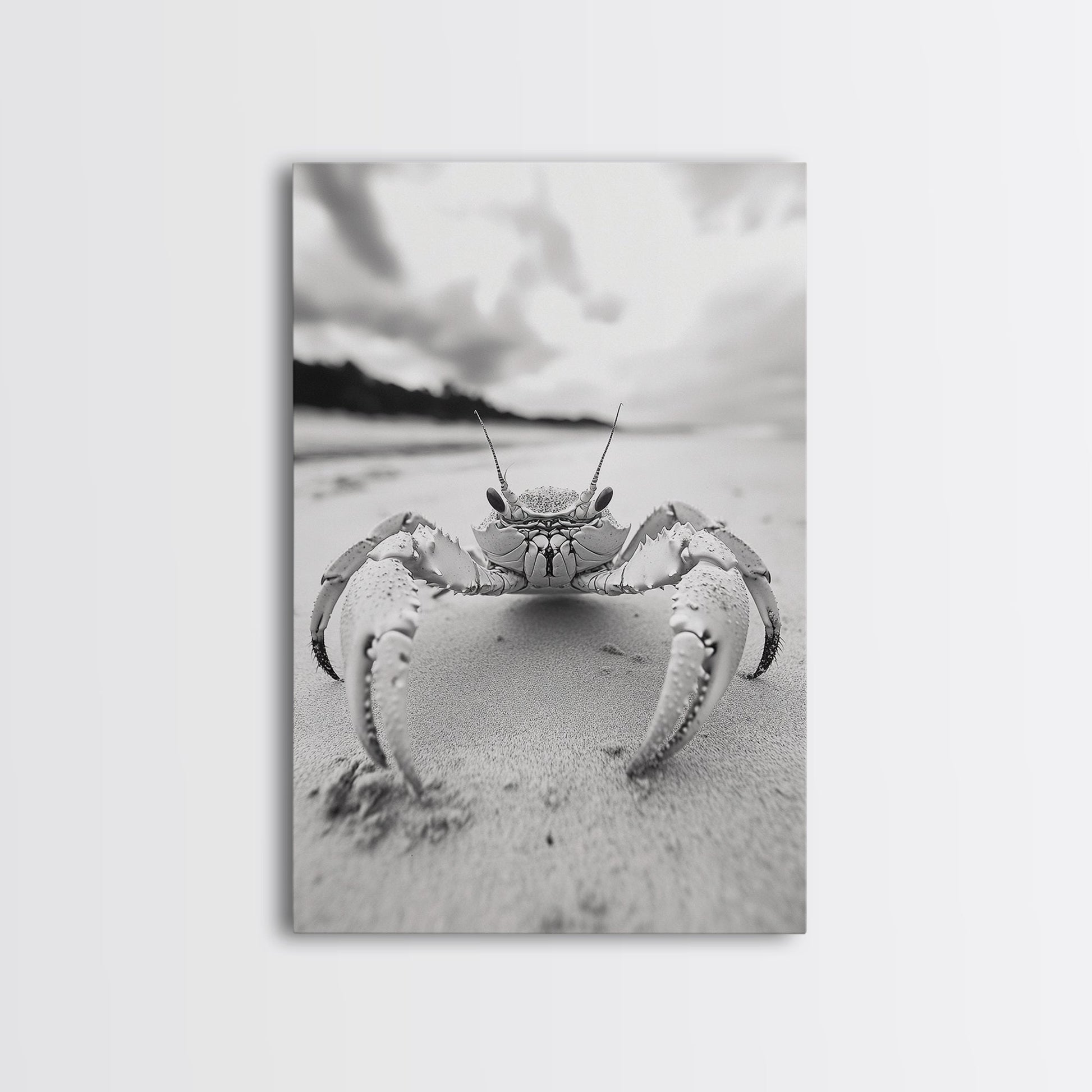 Beach Crab Portrait, Closeup Ocean Art, Tropical Minimalism, Coastal Creature Photo, Framed Canvas Print, Bathroom Wall Decor, Marine Decor