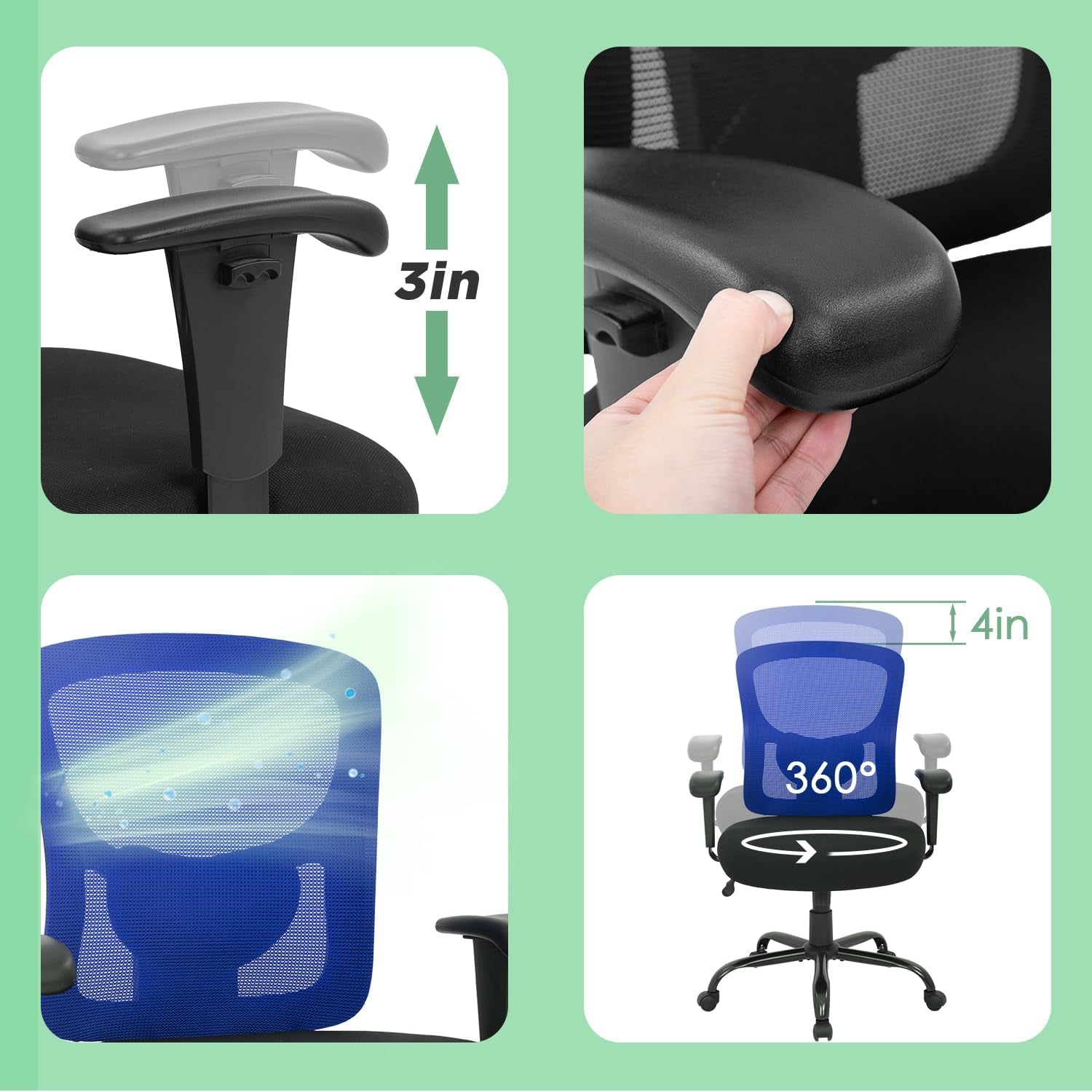 EXTRA LARGE, EXTRA COMFORT—our Big and Tall Office Chair in deep blue is designed for larger users, supporting up to 400 lbs with an oversized seat cushion and a heavy-duty metal base for enduring stability.