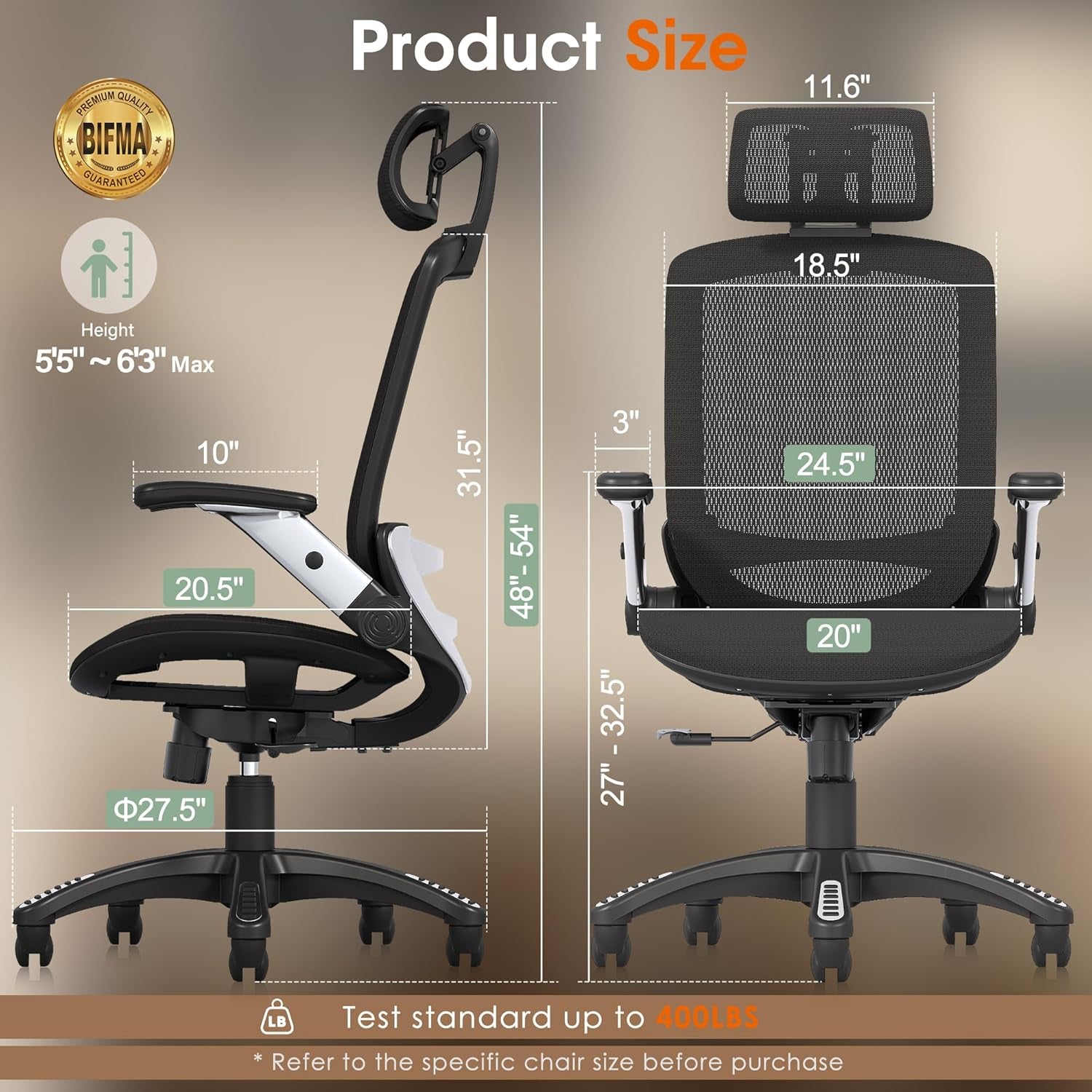 Designed for heights ranging from 5'5" to 6'2" and supporting up to 400 lbs, this chair delivers a wide, accommodating seat and rugged durability that stands up to daily use.