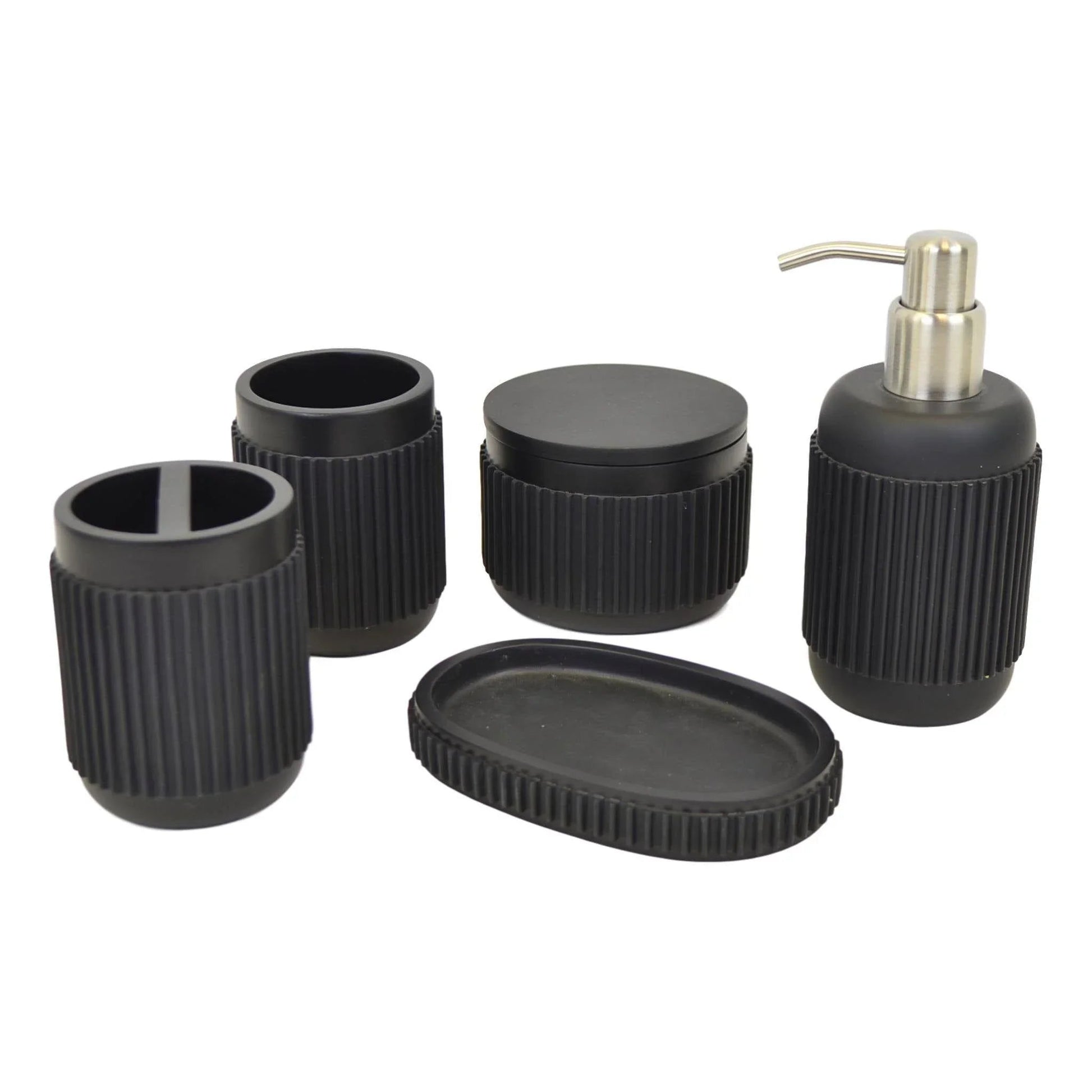 Black Bathroom Set - 5 Piece Bath Set in Ribbed Design