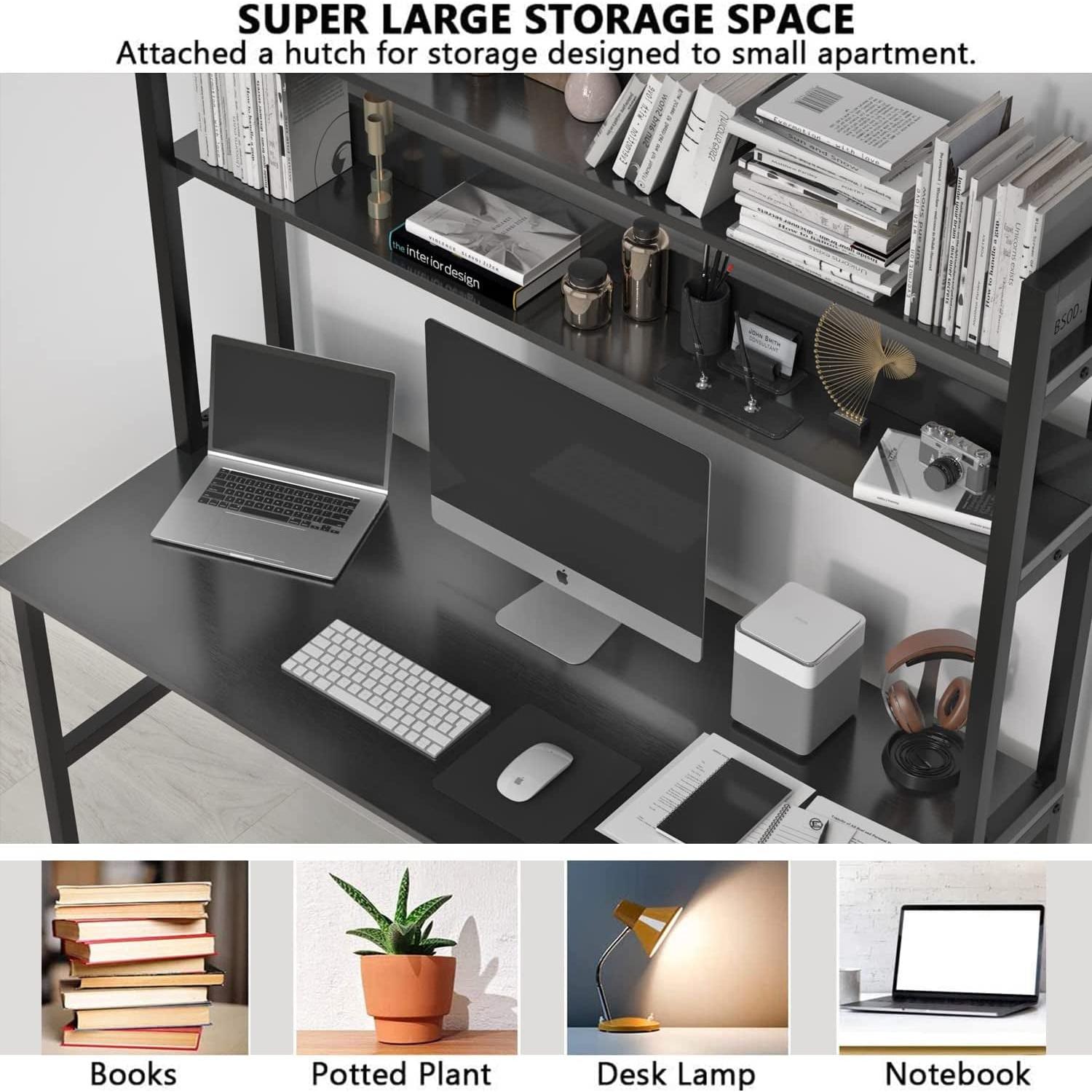 Black Computer Desk With Hutch And Bookshelf Extra Large Desktop