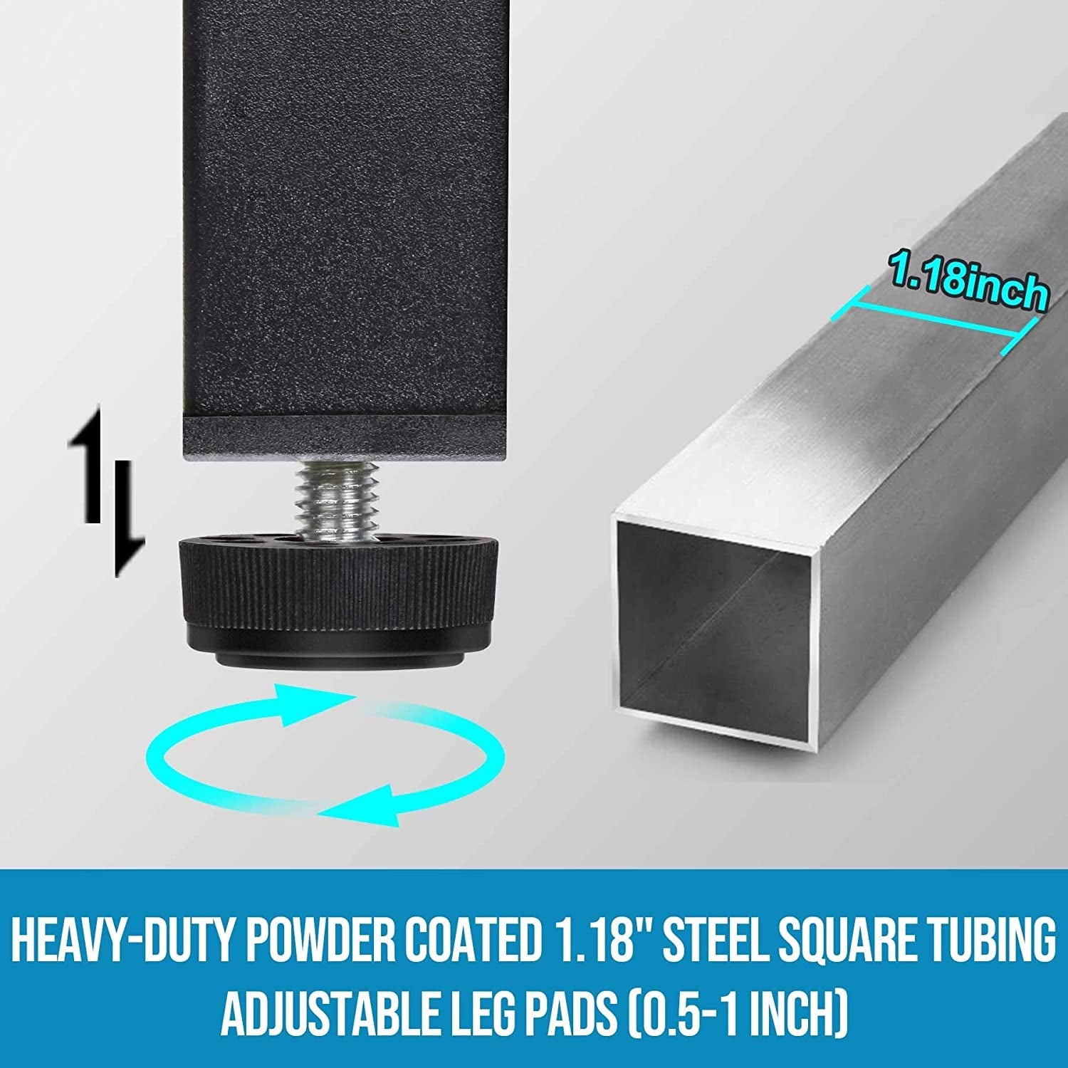 Adjustable Leg Pads (0.5-1 inch)The desk leg pads can be adjusted 0.5-1inch length, help eliminate wobble, to ensure the desk keep stable even on uneven floor. Anti-slip leg pads bottom avoids floor scrape when you move the desk. | Steel Tubing Beam Under Each ShelfHeavy duty 1.18 inch x 1.18 inch steel square tubing beam under each shelf for more durability | Easy to AssembleThe pretty straightforward and well-illustrated instructions are helpful even if you are new to install a desk. |