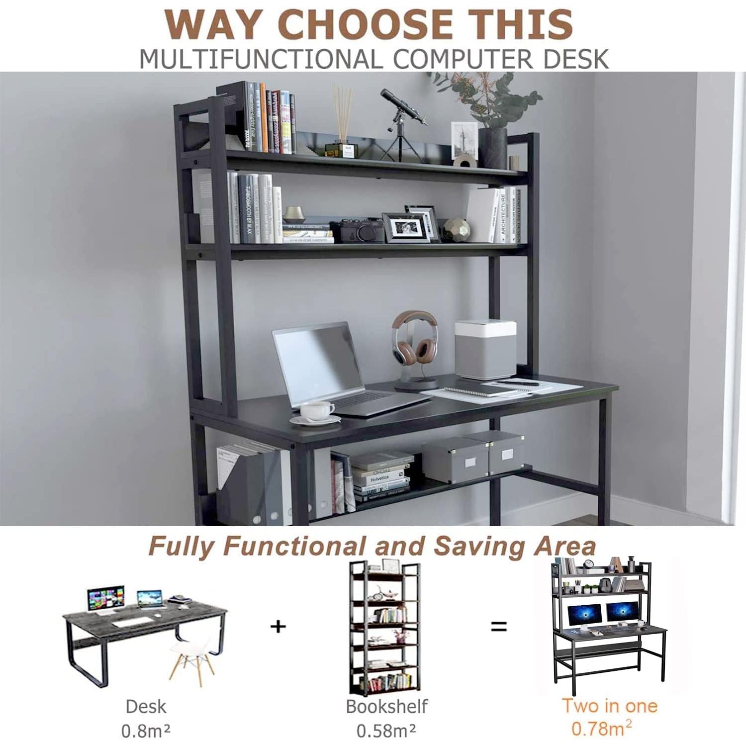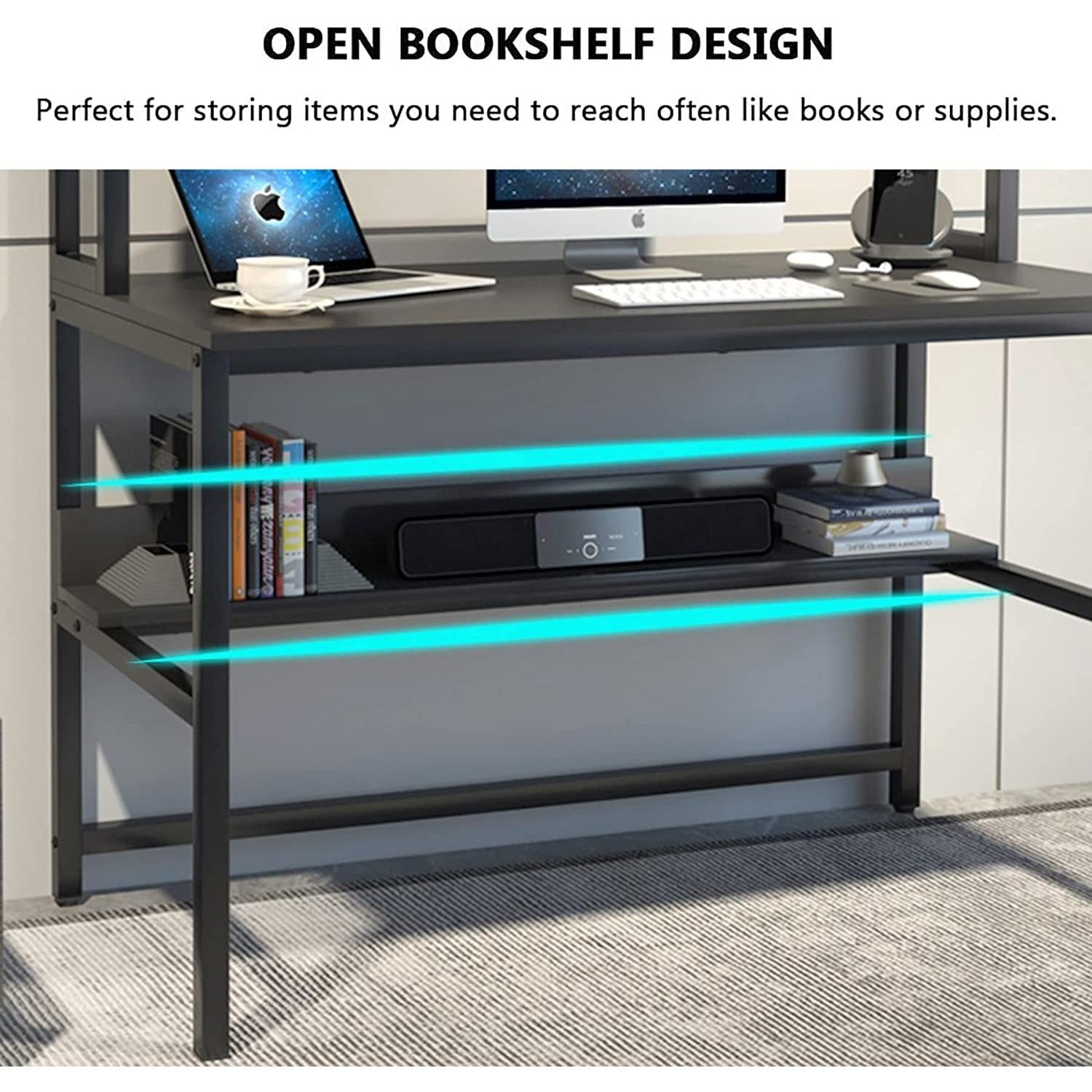 - Ample organized storage: A 2-tier upper rack plus an under-desktop bookcase provide abundant space for books, decor, papers, and craft supplies.