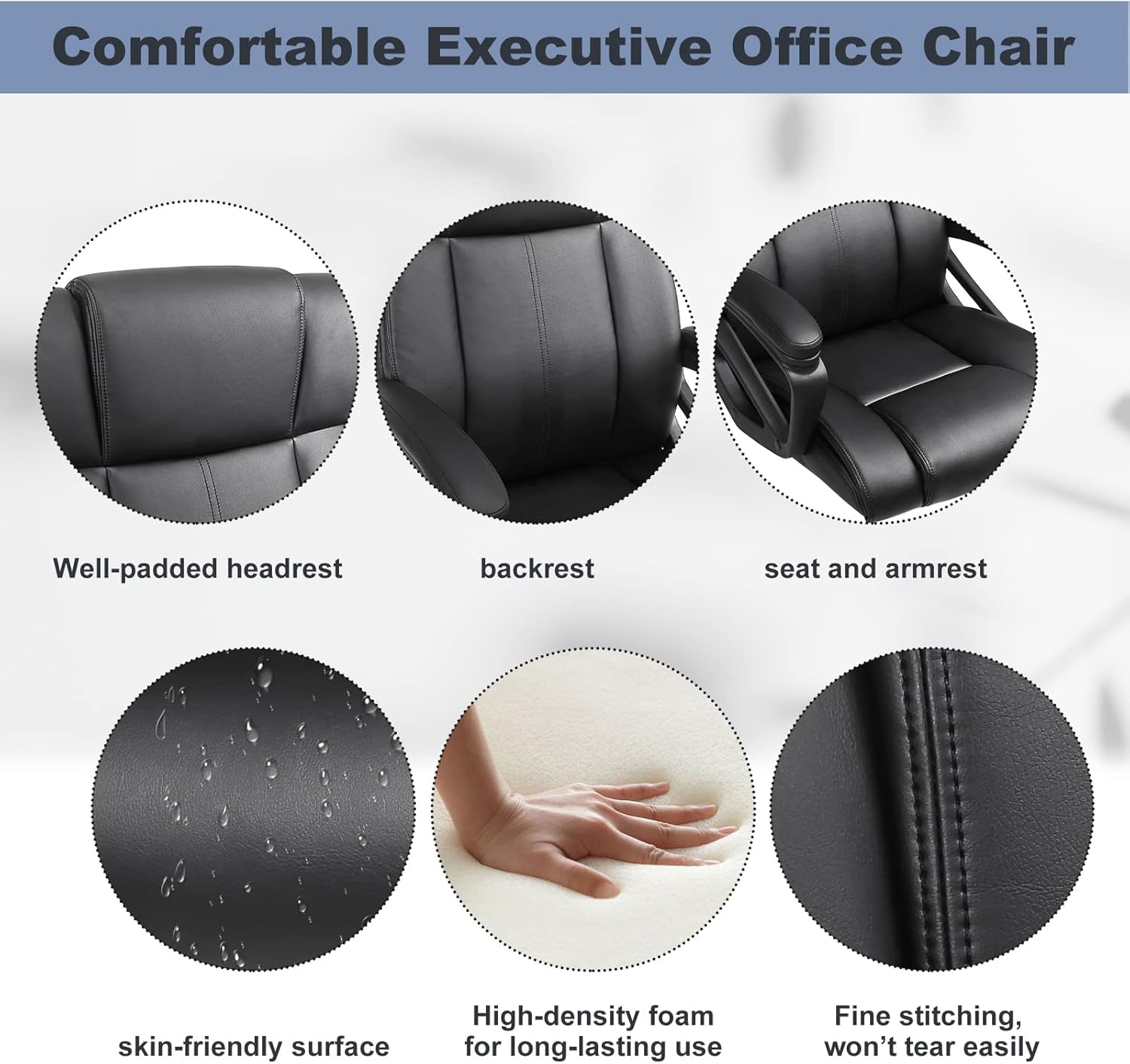 - Premium PU Leather: Soft, breathable, and durable upholstery that’s waterproof and easy to wipe clean for everyday use.