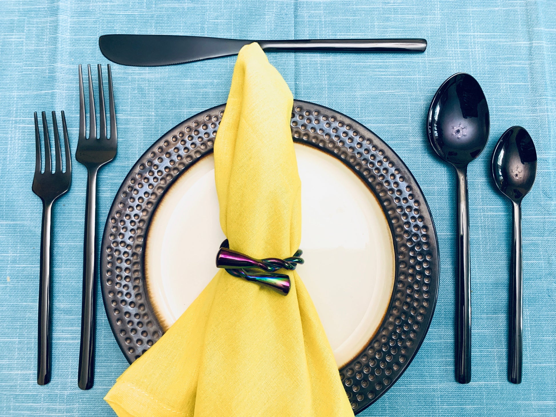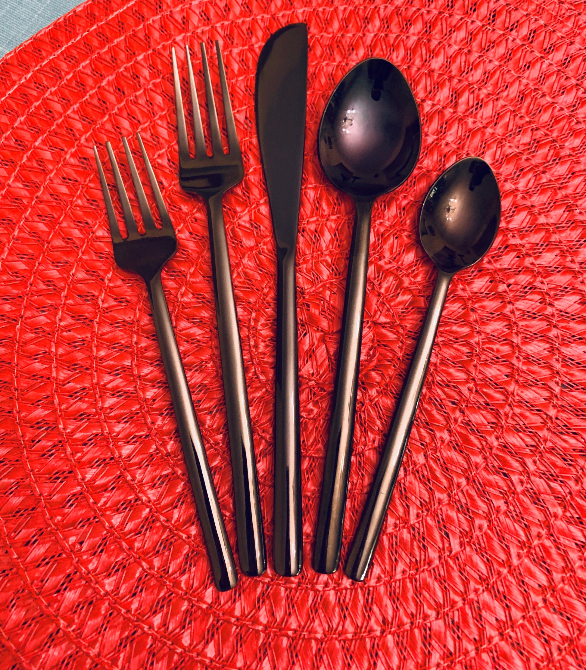 This 20-PC Stainless Steel Flatware Set Service for 4 provides a luxurious touch to any dinner table, thanks to its PVD Titanium Black coating. Each piece is handcrafted for a modern look and superior longevity; the set includes a 9" table knife, 6.5" teaspoon, 7.6" tablespoon, 6.2" salad, and 8.2" dinner fork, together accommodating a pleasant dinner experience for 4. Dishwasher Safe for convenient cleaning.