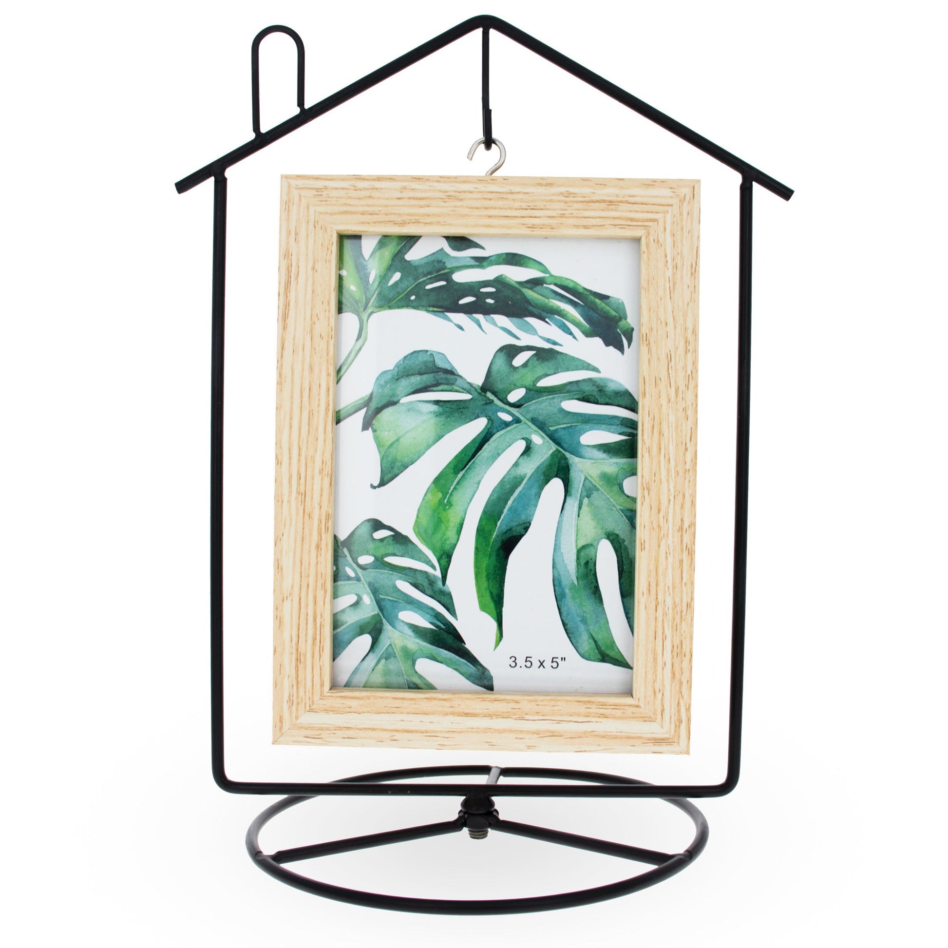 Black House-Shaped Hanging Photo Picture Frame and Metal Ornament Stand 8.7 Inches