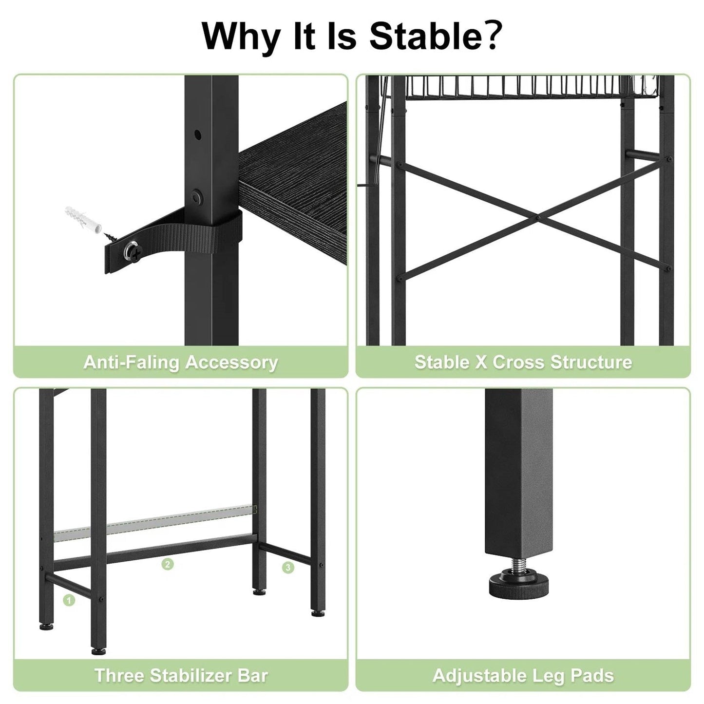 Transform your bathroom organization with this Black Over the Toilet Storage Freestanding Industrial Metal Wood Shelving Unit. Designed to effectively utilize often neglected spaces in your bathroom, this piece of furniture is perfect for storing odds and ends or everyday essentials. With its four levels of storage shelves, this Black Over the Toilet Storage Freestanding Industrial Metal Wood Shelving Unit expands storage space, eliminating the frustration of digging through drawers and cabinets. The sturdy and stable X-shaped design at the back adds an extra layer of support, ensuring your belongings stay secure. Elevate your lifestyle and make the most of your home with this exceptional toilet storage shelf that promises to revolutionize your storage capabilities.