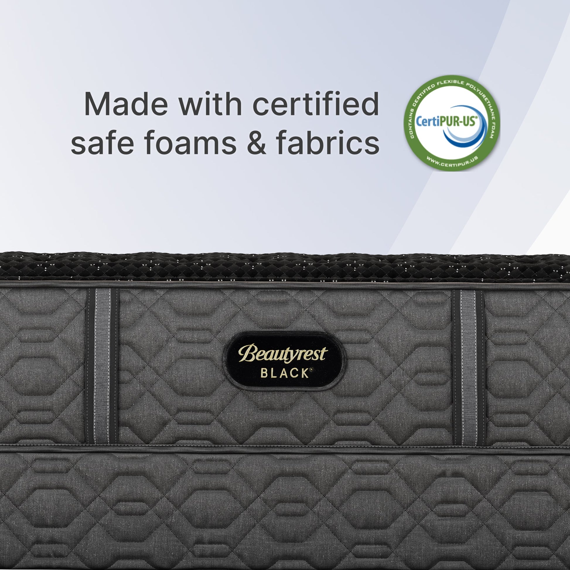 Discover where luxury meets innovation with Beautyrest Black®. Designed with Triple-Stranded Pocketed Coil® Technology, this mattress offers advanced, individualized support and motion separation. Sleep Climate™ Technology works with a Micro Diamond™ Memory Foam upgrade to enhance heat transfer from the body, while SurfaceTouch™ Gel Memory Foam and Self Response™ Latex upgrades conform to the body for responsive pressure relief. Experience our most advanced sleep system with Beautyrest Black®, so you can rest luxuriously.