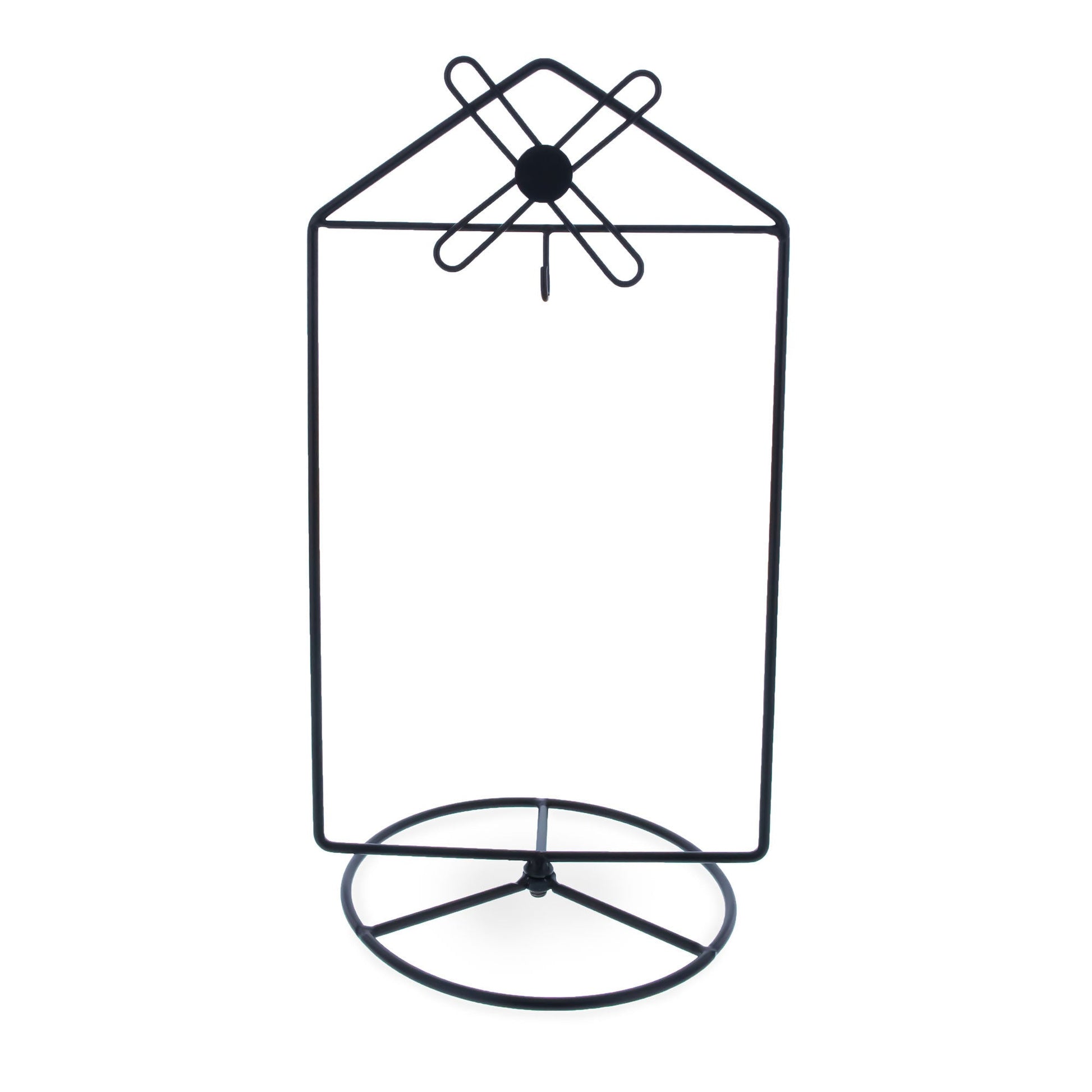 Bring a touch of countryside charm to your display with this windmill-top house ornament stand. Crafted from black metal, it features a geometric house outline topped with a playful windmill design and a center hook for hanging small ornaments, picture frames, or decorative accents. The circular base provides reliable support while maintaining a light, open-frame structure. Ideal for farmhouse décor themes, seasonal decorating, or gifting displays, this stand blends whimsy and functionality in one charming piece.