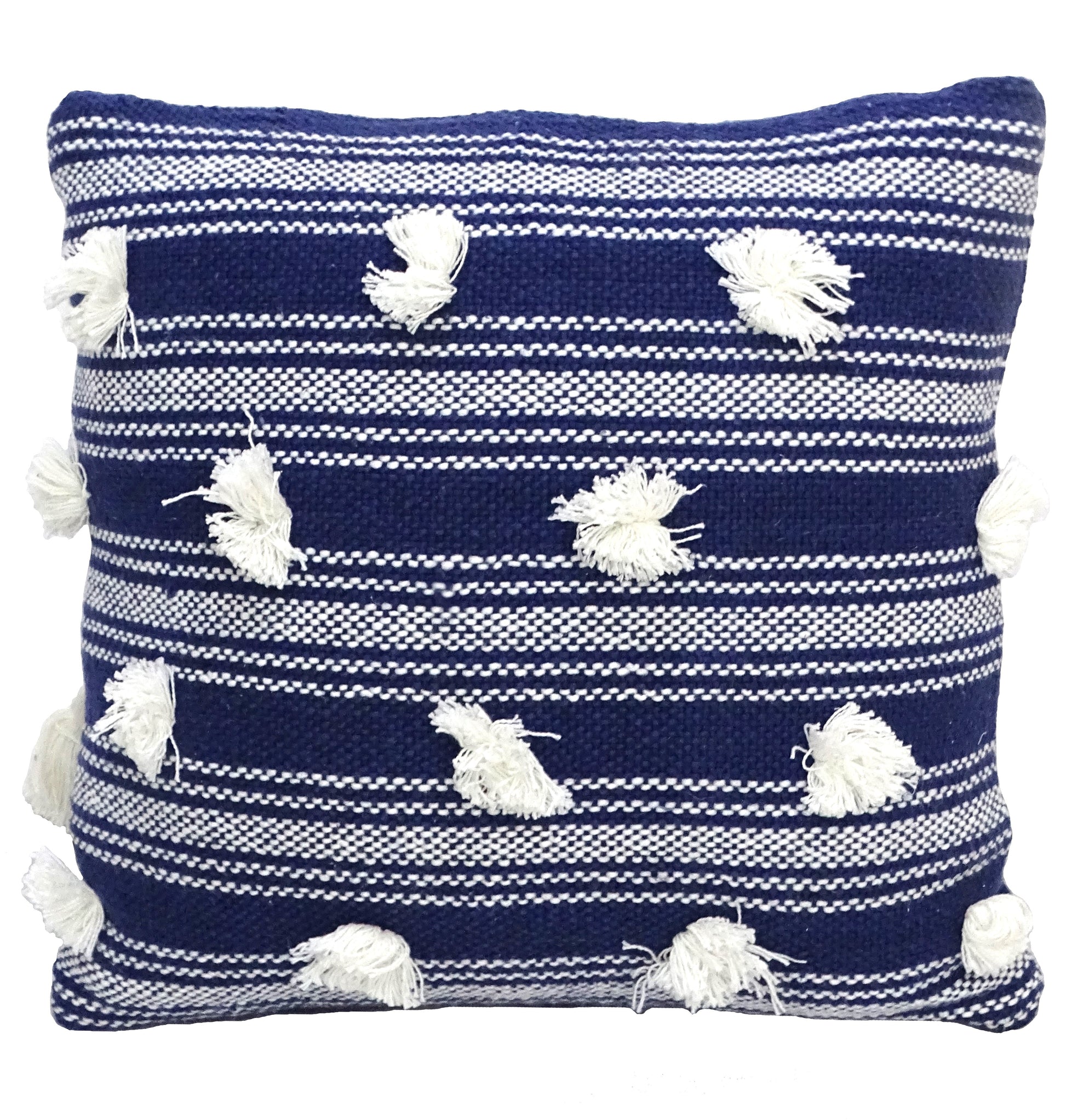 Blue 20" X 20" Decorative Throw Pillow with Pom Pom