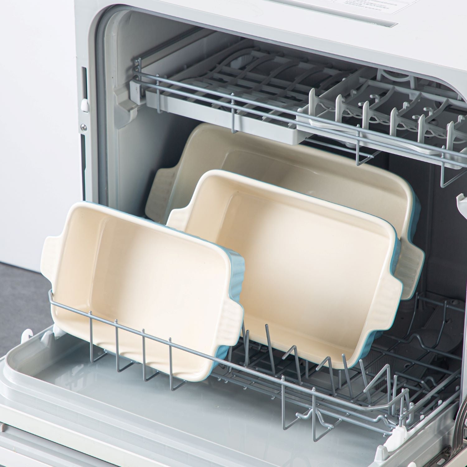 There’s something soothing about the scent of something baking—and this blue porcelain baking set brings that warmth into both your kitchen and your table. With a soft blue exterior and creamy interior, each tray creates a cozy contrast that makes baked dishes look even more inviting. The four sizes (14.7″, 12.2″, 11.1″, and 9.4″) nest together for easy storage and are perfect for anything from roasted vegetables to fruit cobblers. Fluted sides and wavy handles make them a pleasure to use, and the scratch-resistant glaze holds up beautifully in the oven, microwave, and dishwasher.