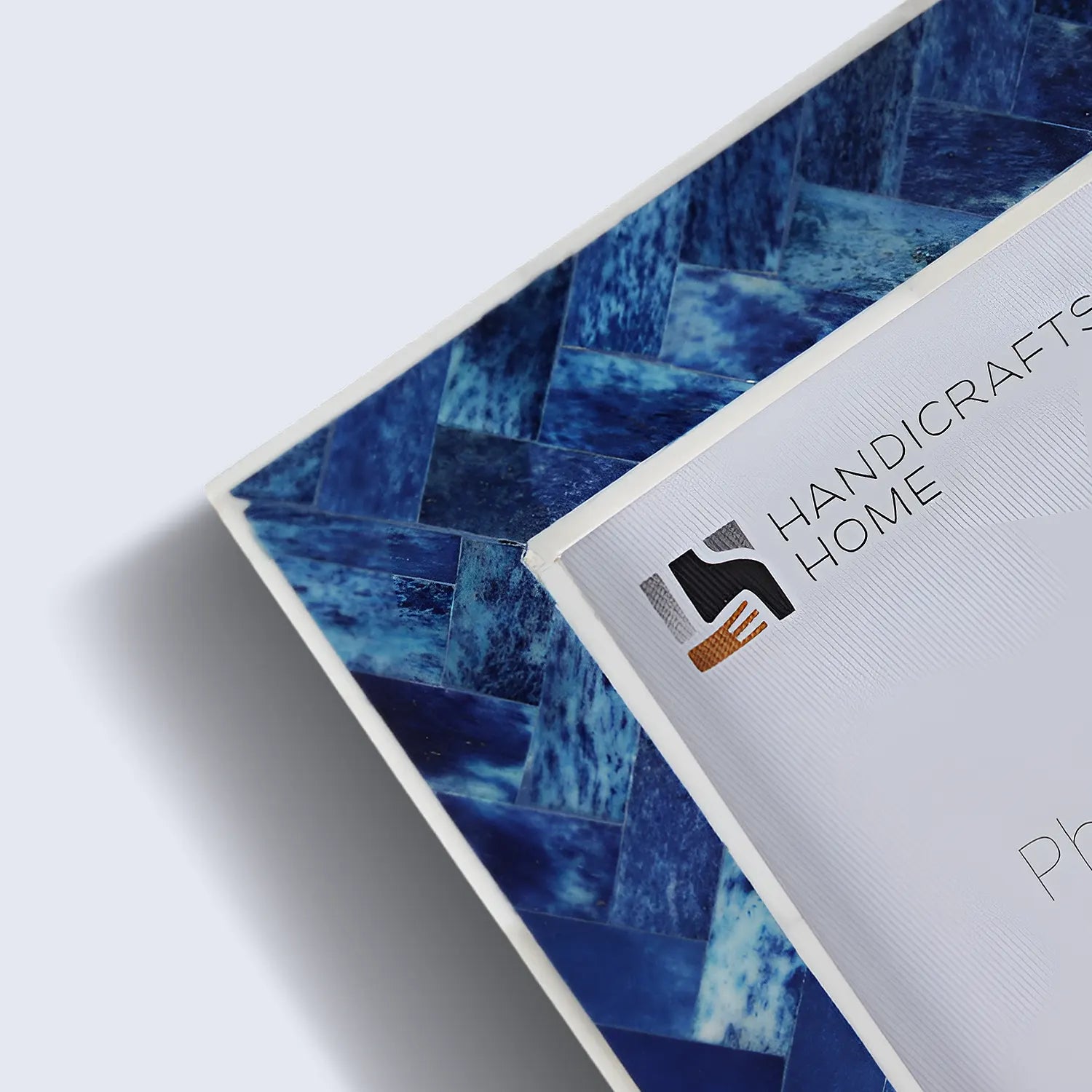 Traditional Craftsmanship: Handmade by Indian artisans using skill passed down through generations, this frame features a bold blue bone inlay pattern.