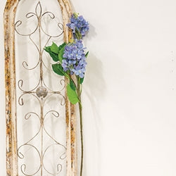 The Blue Hydrangea Bundle Spray brings a fresh, colorful accent to springtime or anytime decor. The spray features a long green plastic stem with a brown-brushed finish for a more realistic look. Blue flowers with a realistic dimensional color adorn the branches in two bundles, along with textured green leaves. The stem is posable for versatile display options. Measures 29” long by 6” wide by 3” deep.