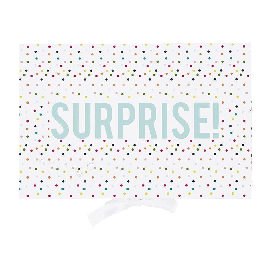 - Gift Box: A sturdy, paper-wrapped gift box with a cheerful "Surprise" message on the front.