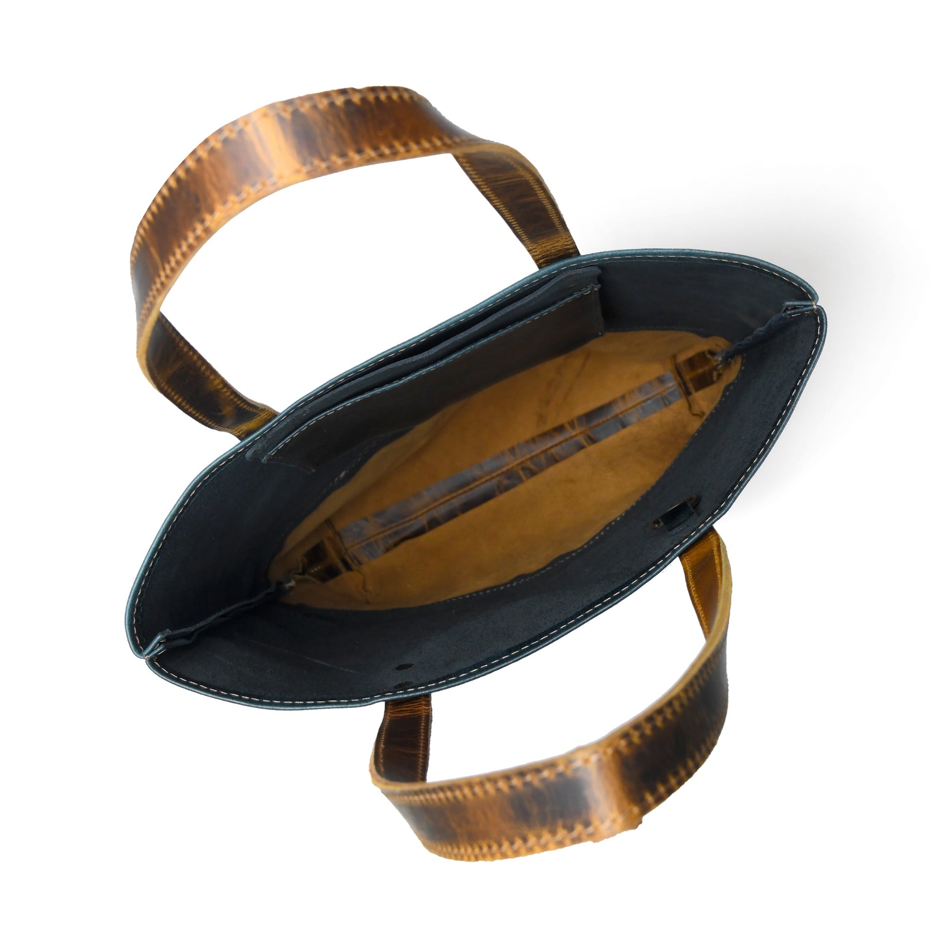 Expertly handcrafted and designed with practicality in mind, the Blue Women's Leather Tote is the perfect combination of style and function. Made with premium naked blue leather and a spacious 16-inch interior, this tote easily fits your laptop and everyday essentials. The versatile shoulder bag can also be used as a tote, making it the ultimate accessory for any occasion.