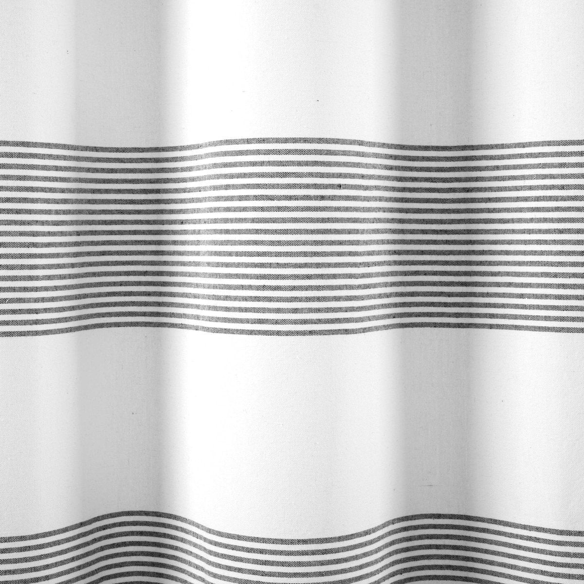 Decorated with rows of pin stripes, this Boho Tassel Stripe Yarn Dyed Recycled Cotton Blend Shower Curtain brings a simple welcoming style to your bathroom decor. Stylish tassels hang from the top for added bohemian flare. This product contains 100% GRS certified recycled material.