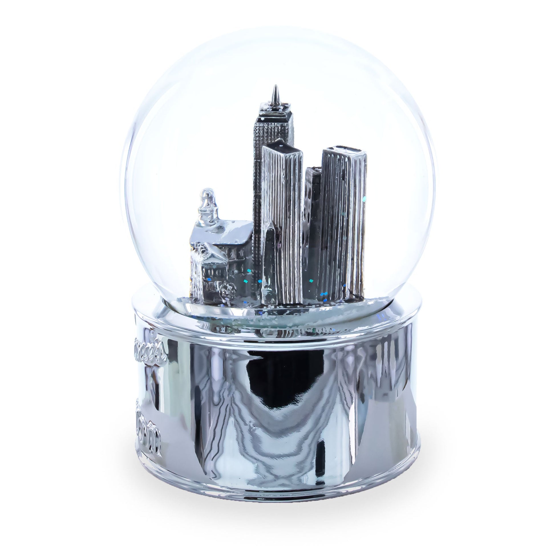 Boston Cityscape Silver Base Glass Water Snow Globe