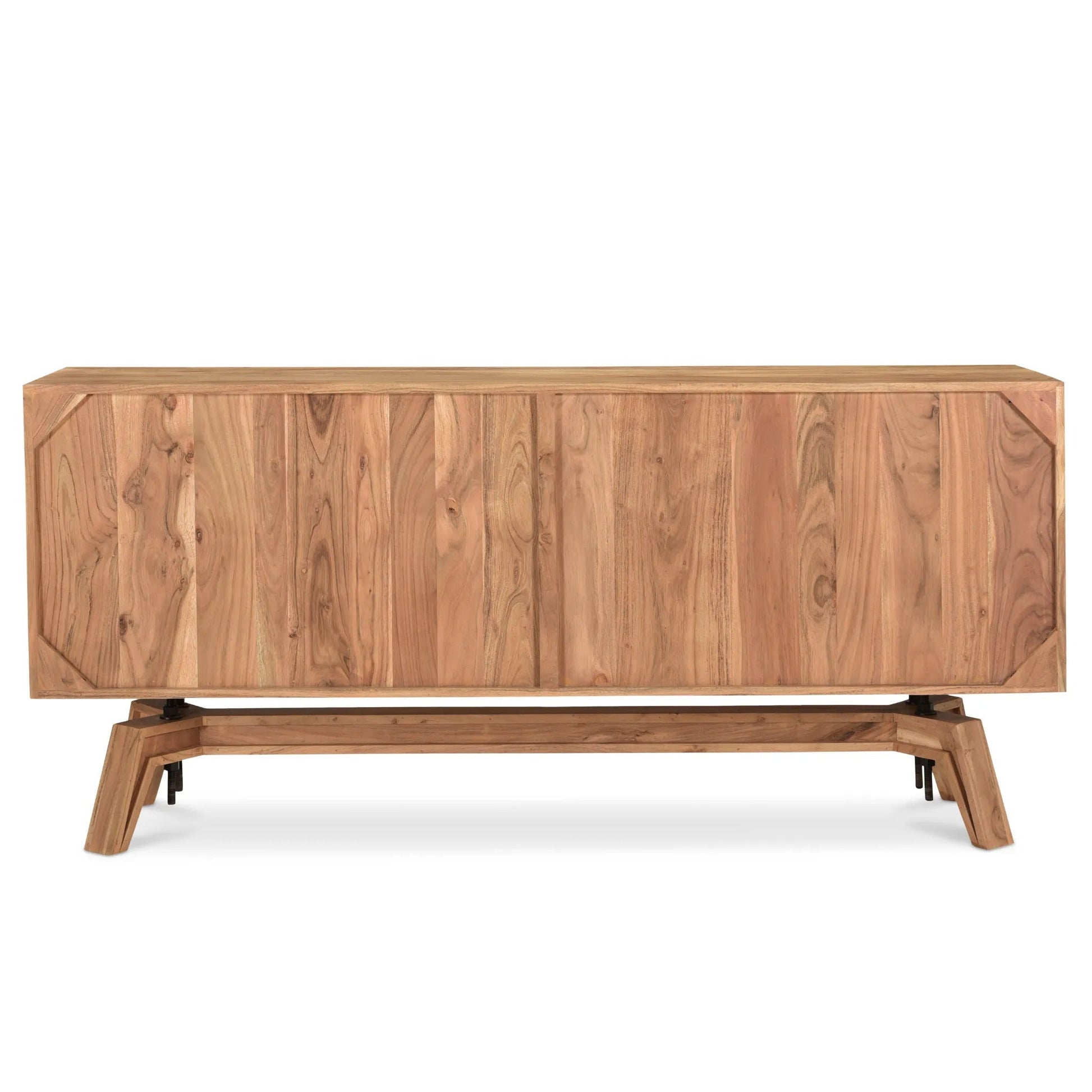 Experience the luxurious Branch Live Edge Sideboard, crafted from premium acacia wood in a sleek and organic tone. Featuring a substantial tabletop, sturdy legs, and double cabinets with a supportive trestle base, this sideboard seamlessly balances modern aesthetics with durable functionality. Boasting exposed bolt accents, this piece adds an industrial touch to any space. Constructed entirely from solid acacia wood.