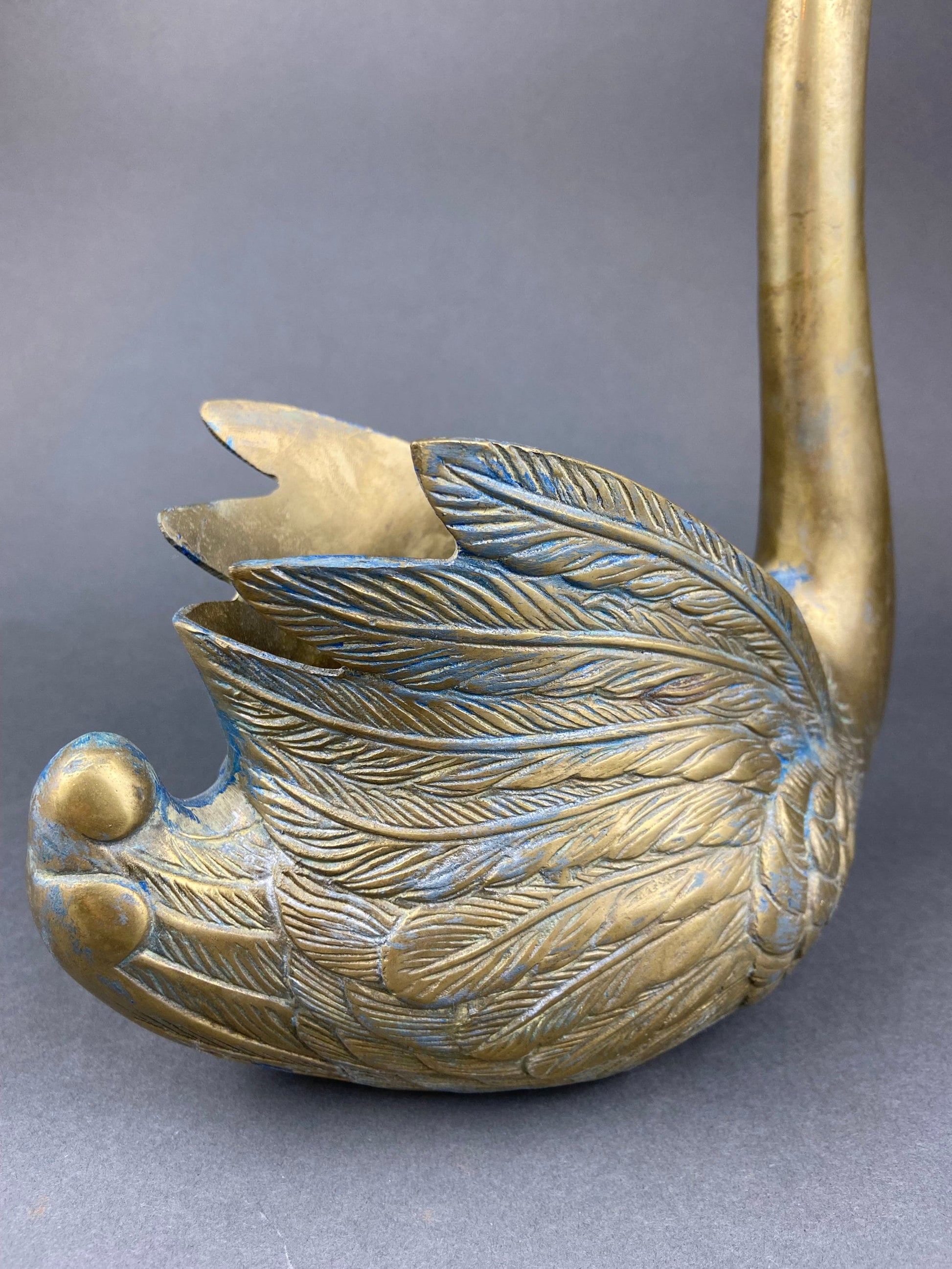 Brass Planter Shaped like Swan. Bird Shaped Herb Planter. Shabby Chic Home Decor. Excellent Vintage Condition. Beautiful blue patina.