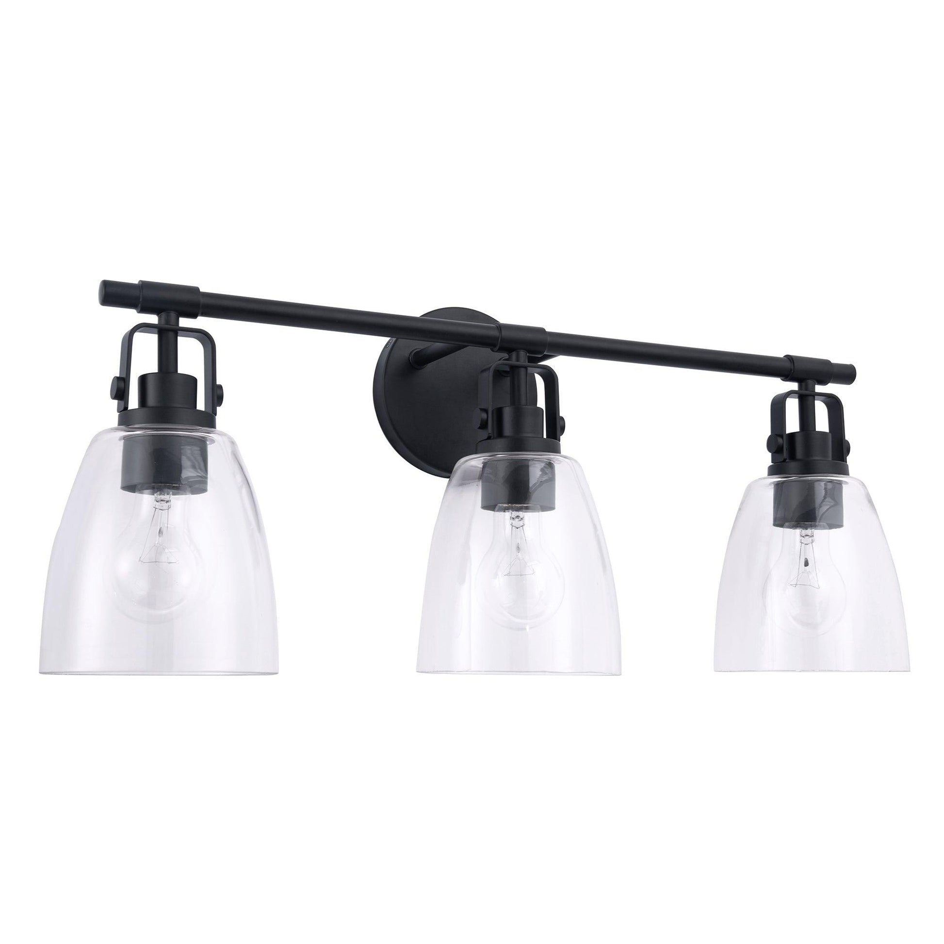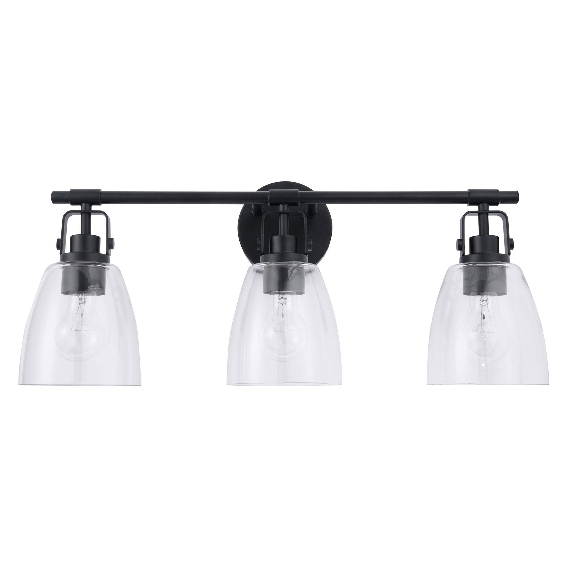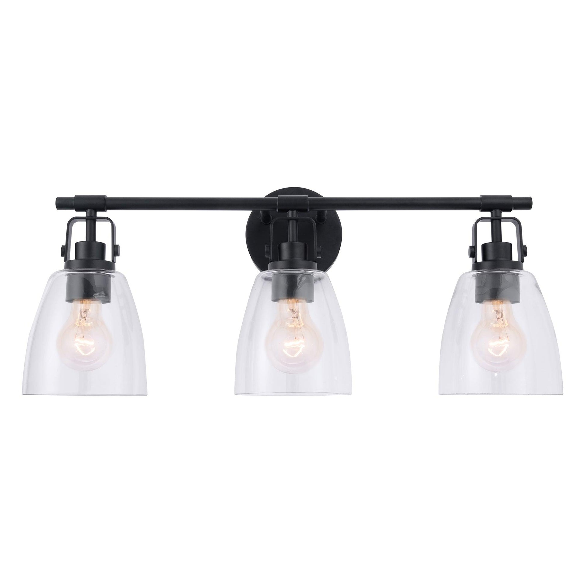 The Brilliance Modern Farmhouse 3-Light Vanity Light is the perfect addition to any home looking for a touch of rustic charm. Made from durable steel, this Vanity Light is built to last and features clear glass shades that provide ample light for your living space.