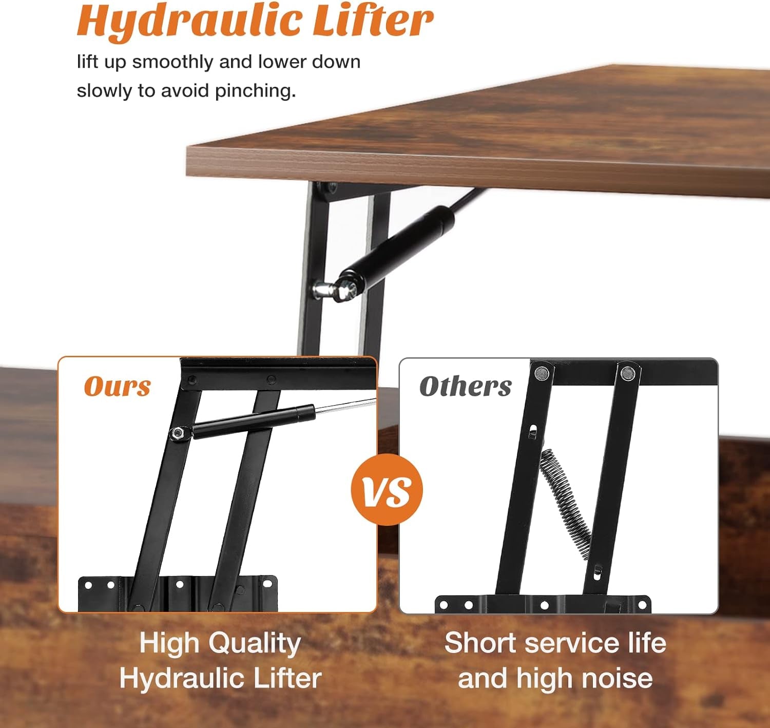Simple Style meets practical design. The lift-top mechanism raises the tabletop up to 6.3 inches, creating a comfortable surface for a laptop, meals, or homework while you relax in the living room. It supports up to 11 lbs with smooth, quiet operation and stays stable as you adjust.