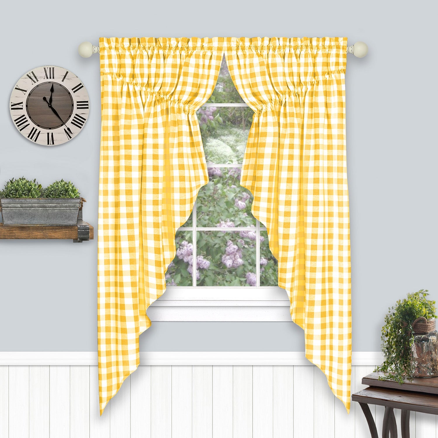 Buffalo Check Gathered Swag Window Curtain Pair, 72x63 Inches