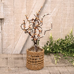The Butter Cake Pip Berry Pick brings a textured, nature-inspired accent to spring, fall, or everyday decor. The brown-wrapped stem sprouts curled branches adorned with small faux berries in warm, neutral tan and cream shades. Flexible branches allow for versatile positioning. Measures 12” high by 3” wide by 1” deep.