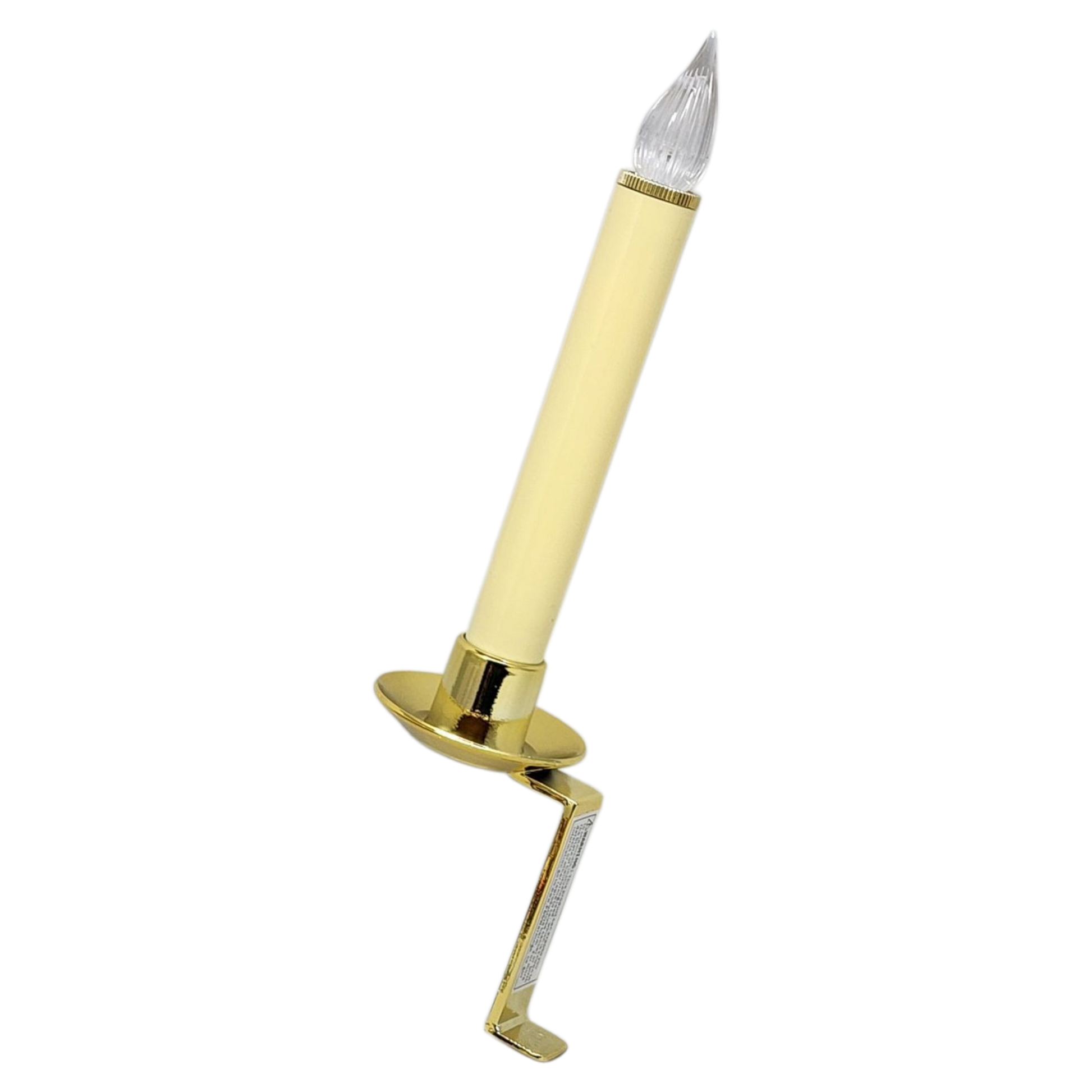 - Brass-colored locking non-tip base secures candle to window
