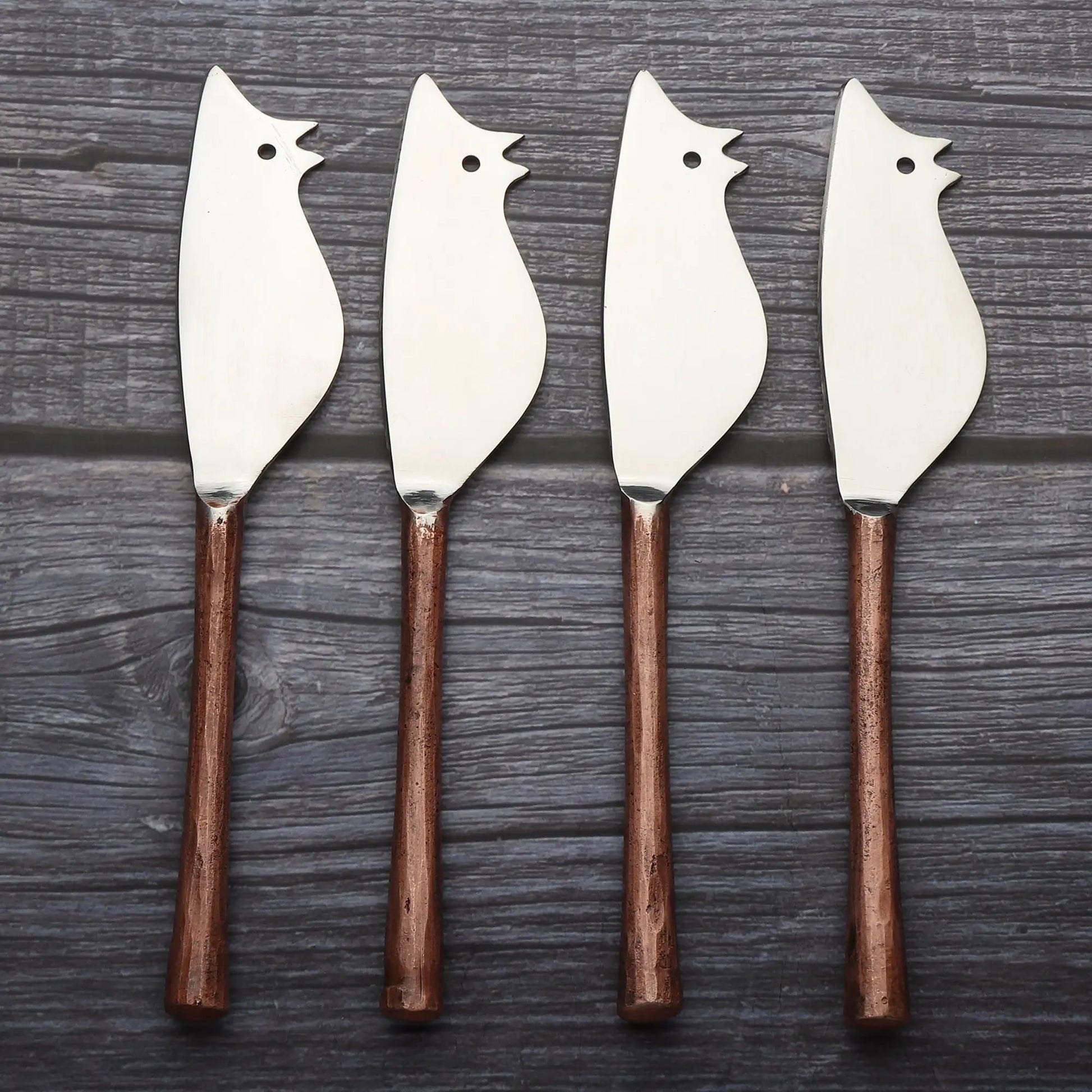 Our Camellia Antique Copper Cheese Spreader/Knife Set brings a playful aesthetic to your charcuterie boards. Named after the legendary Spanish tooth fairy, these clever little mice are fun and functional. The knife does double duty slicing on one side and spreading soft cheese on the other. Even the adorable little ears and snout become handy little forks, perfect for plucking pickles or olives.