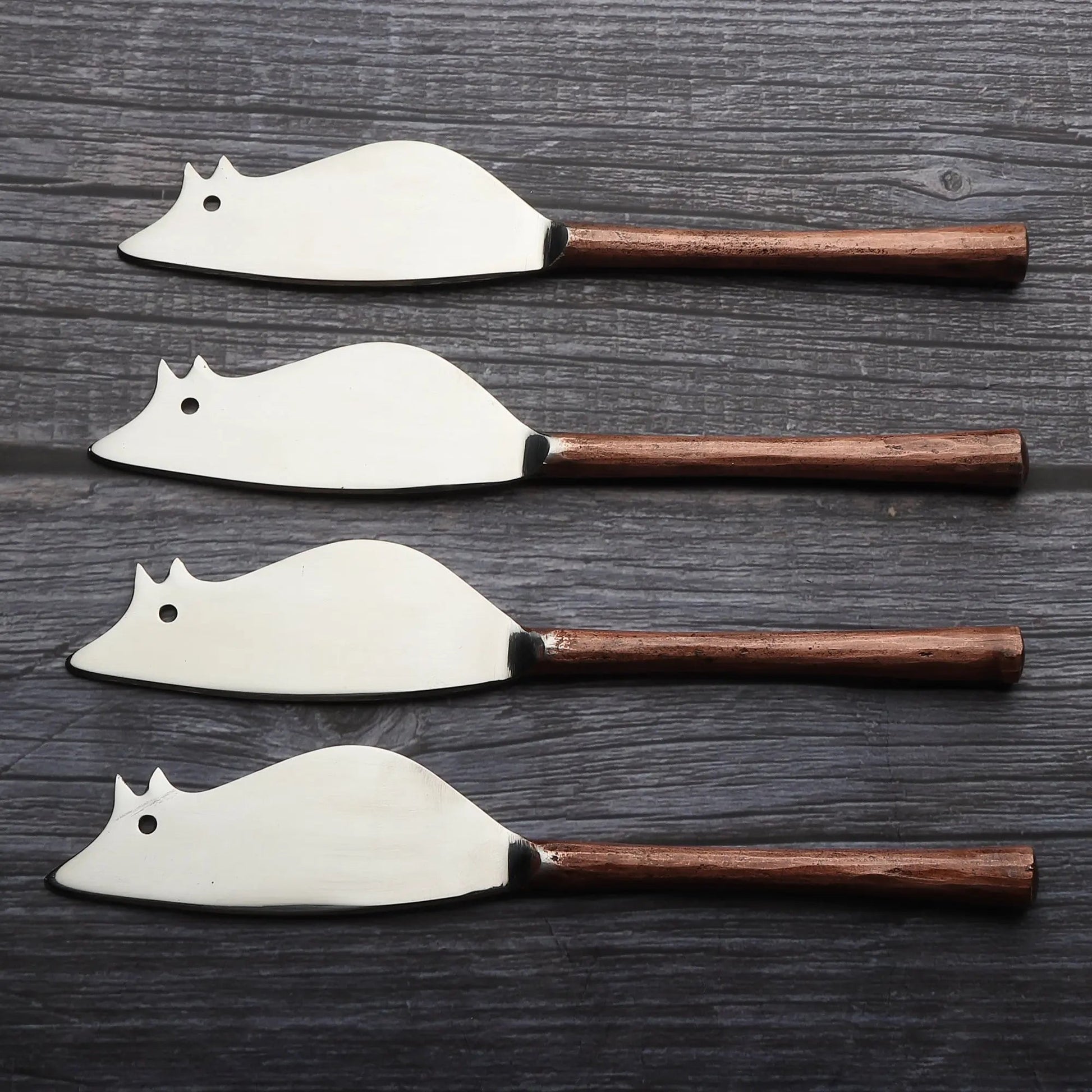 • Set includes 4 mouse-shaped cheese spreader knives