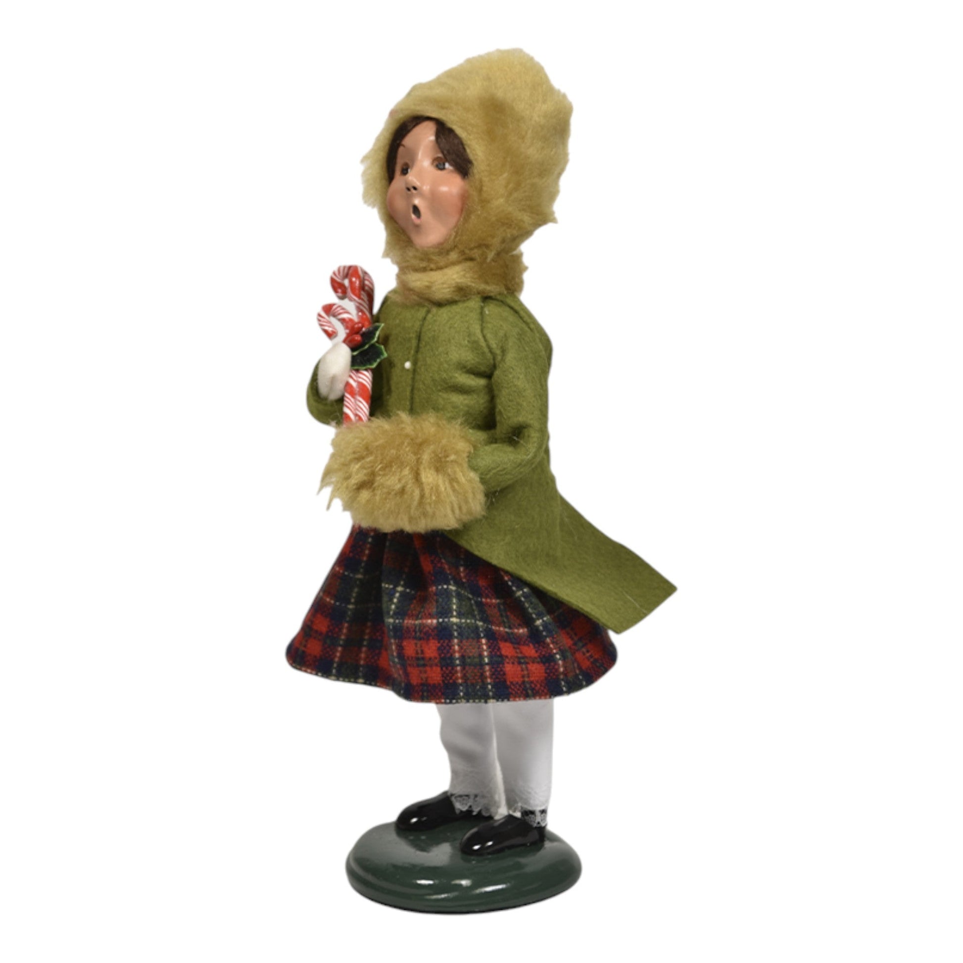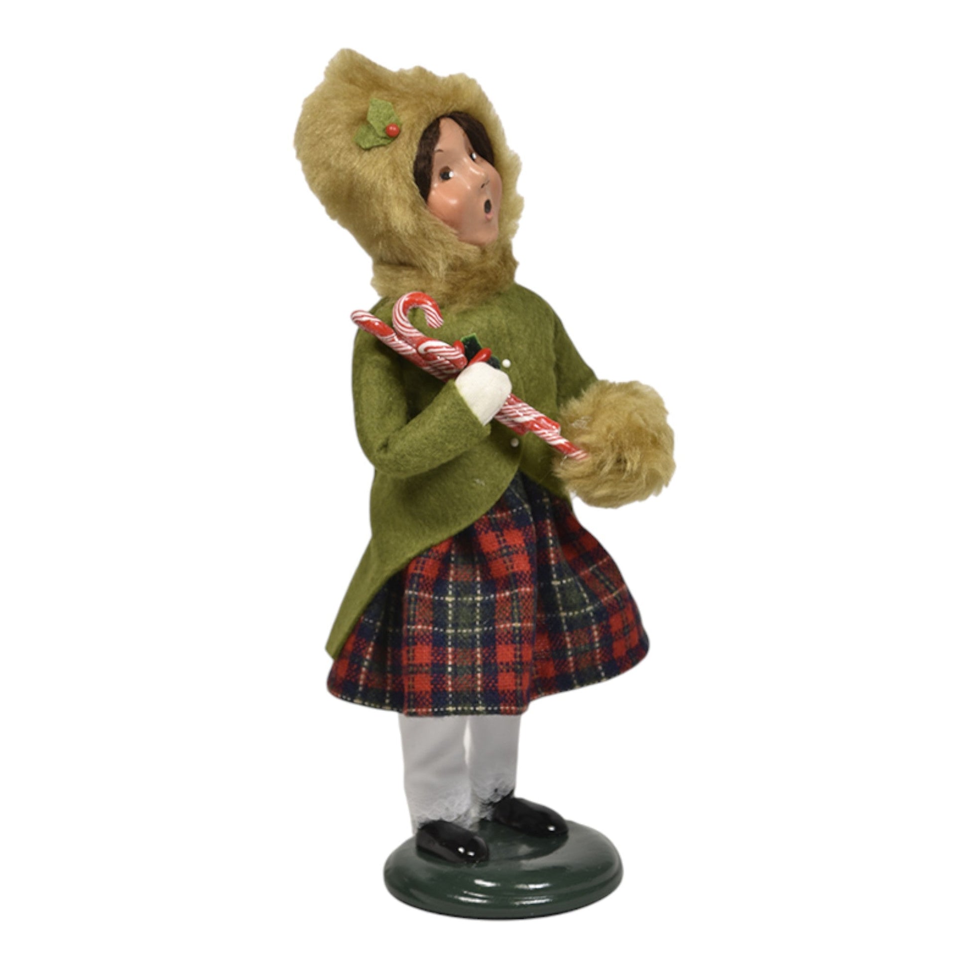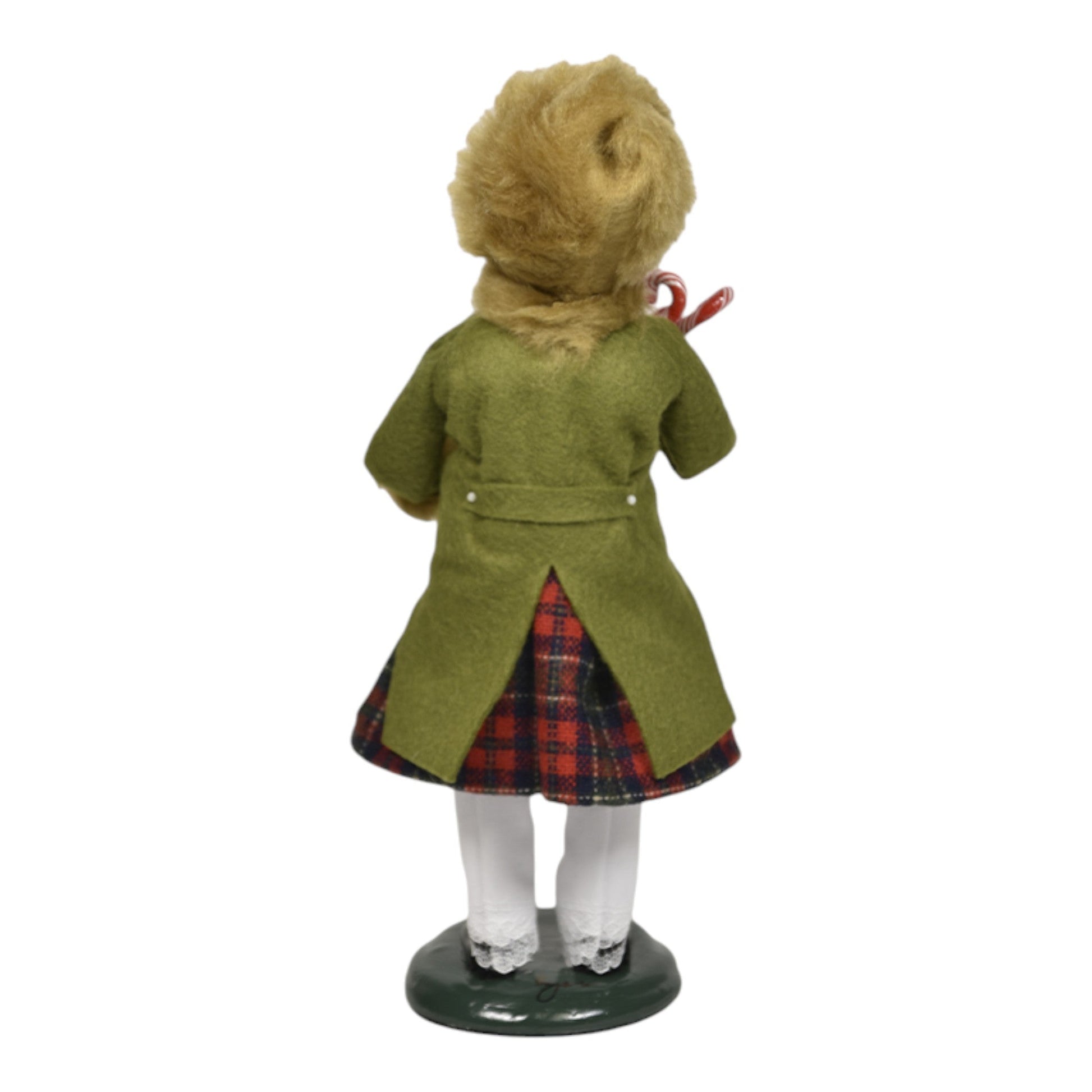 Capture the spirit of the holidays with the delightful Byers Choice Candy Cane Family Girl Figurine! Standing at 10 inches tall, this charming collectible features an adorable girl dressed in a cozy green coat adorned with a fluffy trim and a matching hat. Her outfit is completed with a classic plaid skirt, perfectly embodying the festive spirit of the season. She holds a cheerful candy cane, adding a sweet touch that reflects the joy of Christmas traditions.