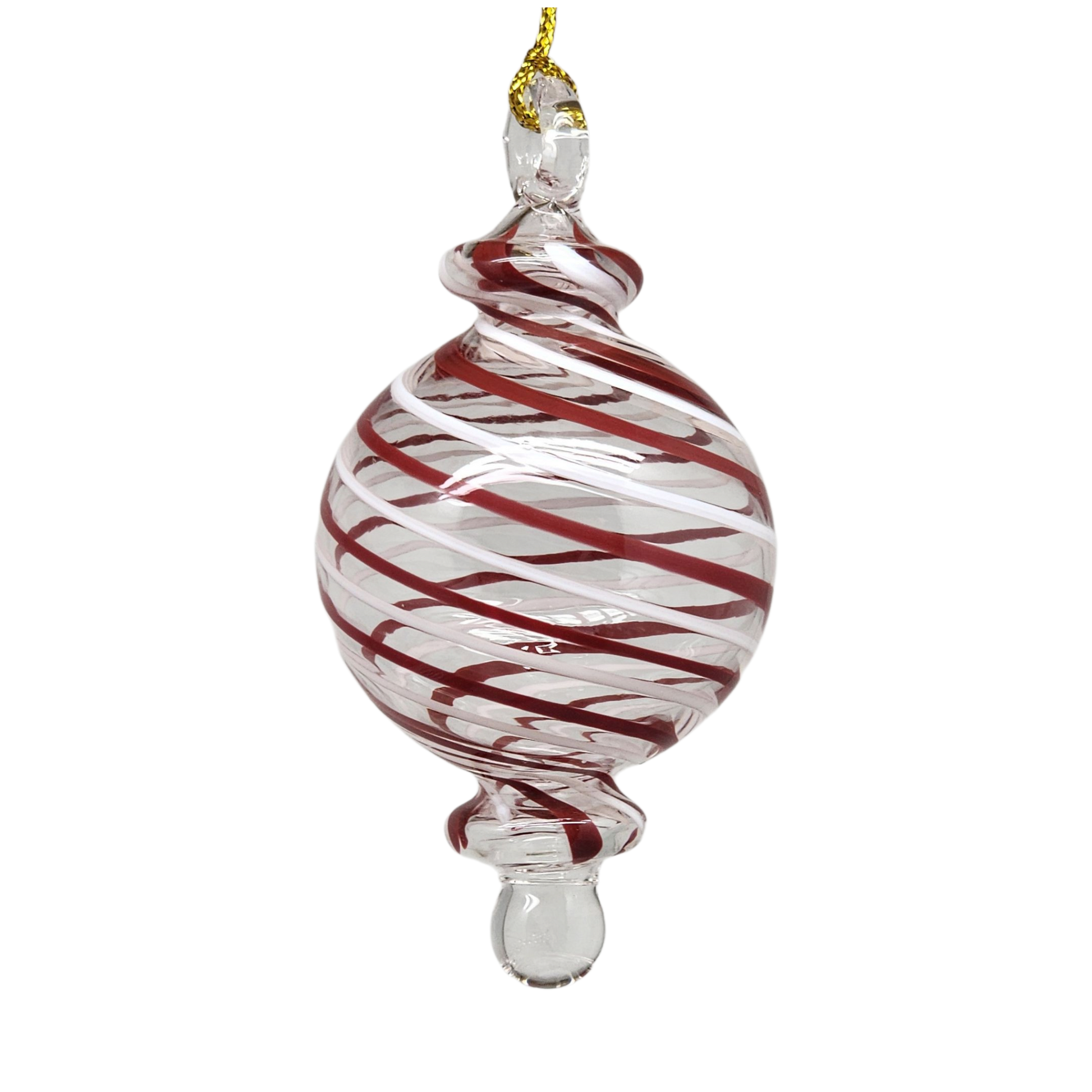 Add a cheerful swirl of holiday charm to your decorations with this delightful Candy Cane Swirl Ball glass ornament. Handcrafted from mouthblown German Pyrex glass in Egypt, this ornament measures about 3.25 inches long and features classic red and white spiraling stripes reminiscent of the beloved candy cane treat. Its rounded ball shape adds a traditional yet playful touch that will brighten any Christmas tree or festive display.