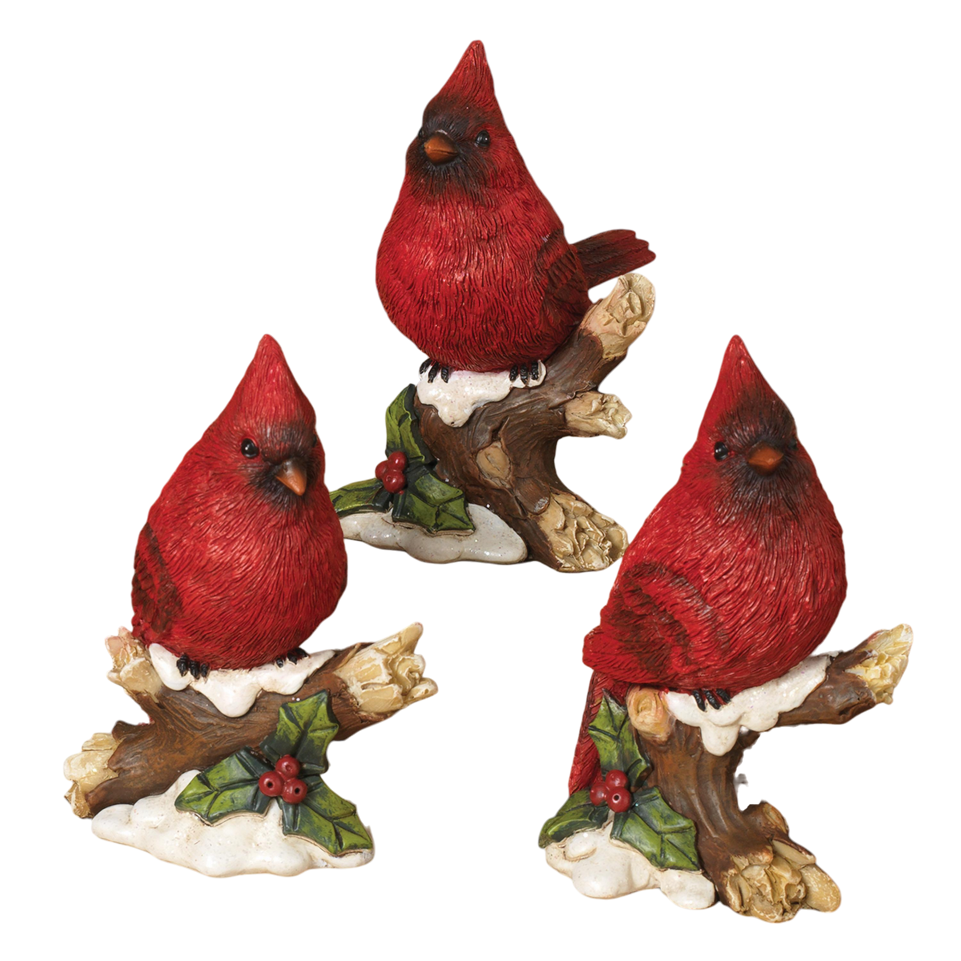 Add a touch of woodland enchantment to your holiday decor with this charming cardinal figurine, standing approximately 5 inches tall. Sold separately, each figurine depicts a vibrant red cardinal perched elegantly on a snowy branch adorned with festive holly and berries. The intricately detailed feathers and lifelike expression bring a sense of natural beauty and serenity, making it a perfect addition to your seasonal displays.