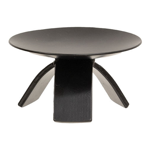 The Cast Iron Tripod Pillar Holder is a metal candle holder made with sleek, stylish design. Crafted from cast iron with a smooth black finish, the candle holder features a round plate atop a trio of wide legs. The tripod-style holder beautifully displays pillar candles, floral half spheres, or other decor items. Measures 2.25” high by 4.25” diameter. Candle not included.