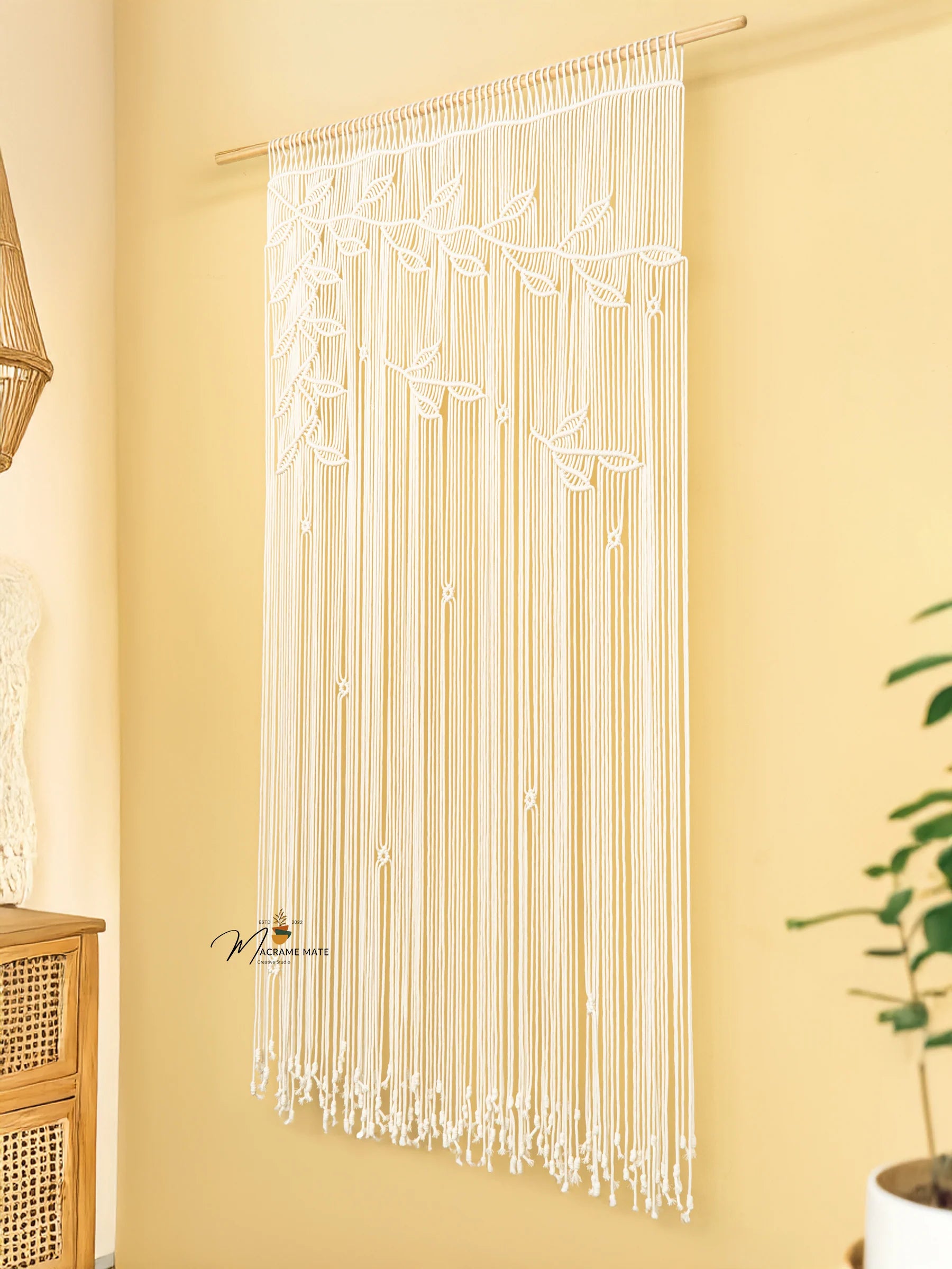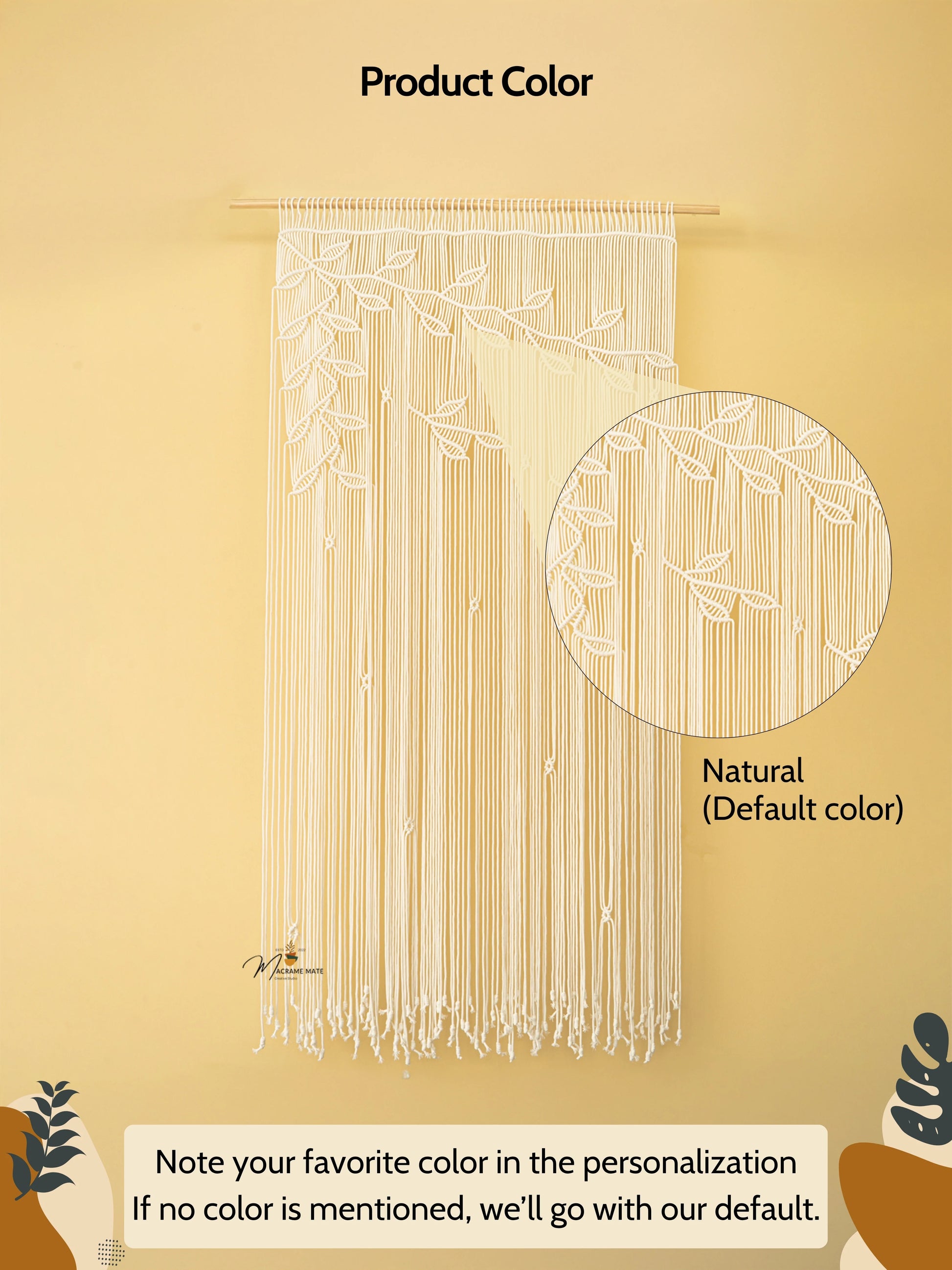 Welcome natural elegance into your home with our Celeste Natural Macrame Leaf Door Curtain. Handcrafted from premium, undyed cotton cords, this ethereal piece features delicate leaf patterns that create beautiful shadow play while allowing light to filter through. The organic cream hue brings warmth to any doorway, window, or room divider, perfect for creating a serene, bohemian atmosphere.