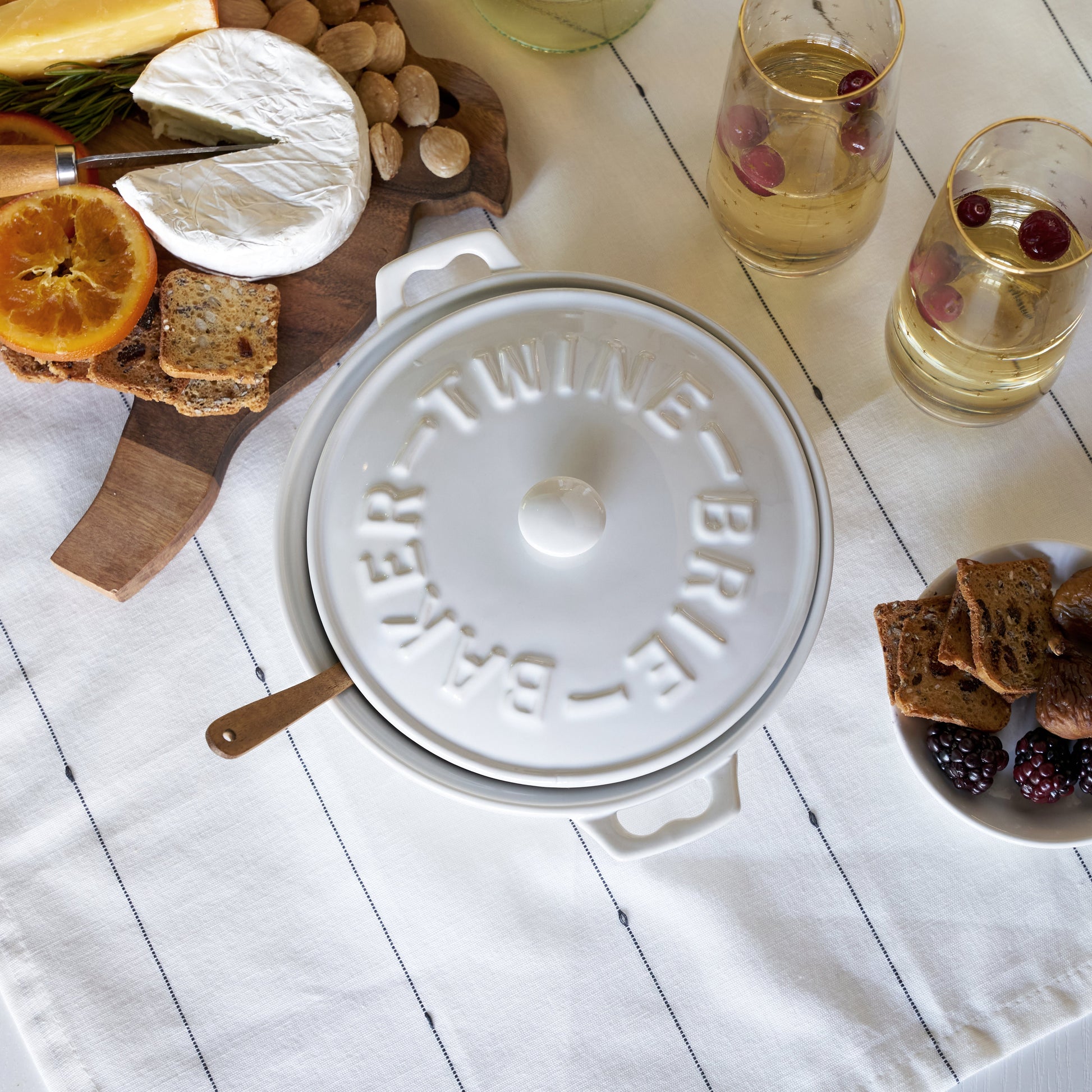 When it comes to guest-pleasing hors d'oeuvres, nothing beats baked brie. Our stoneware baker makes preparing this delectable dish easier than ever: simply top with a drizzle of honey or spread of your favorite jam, bake for 15 minutes in a 350-degree oven, & enjoy!