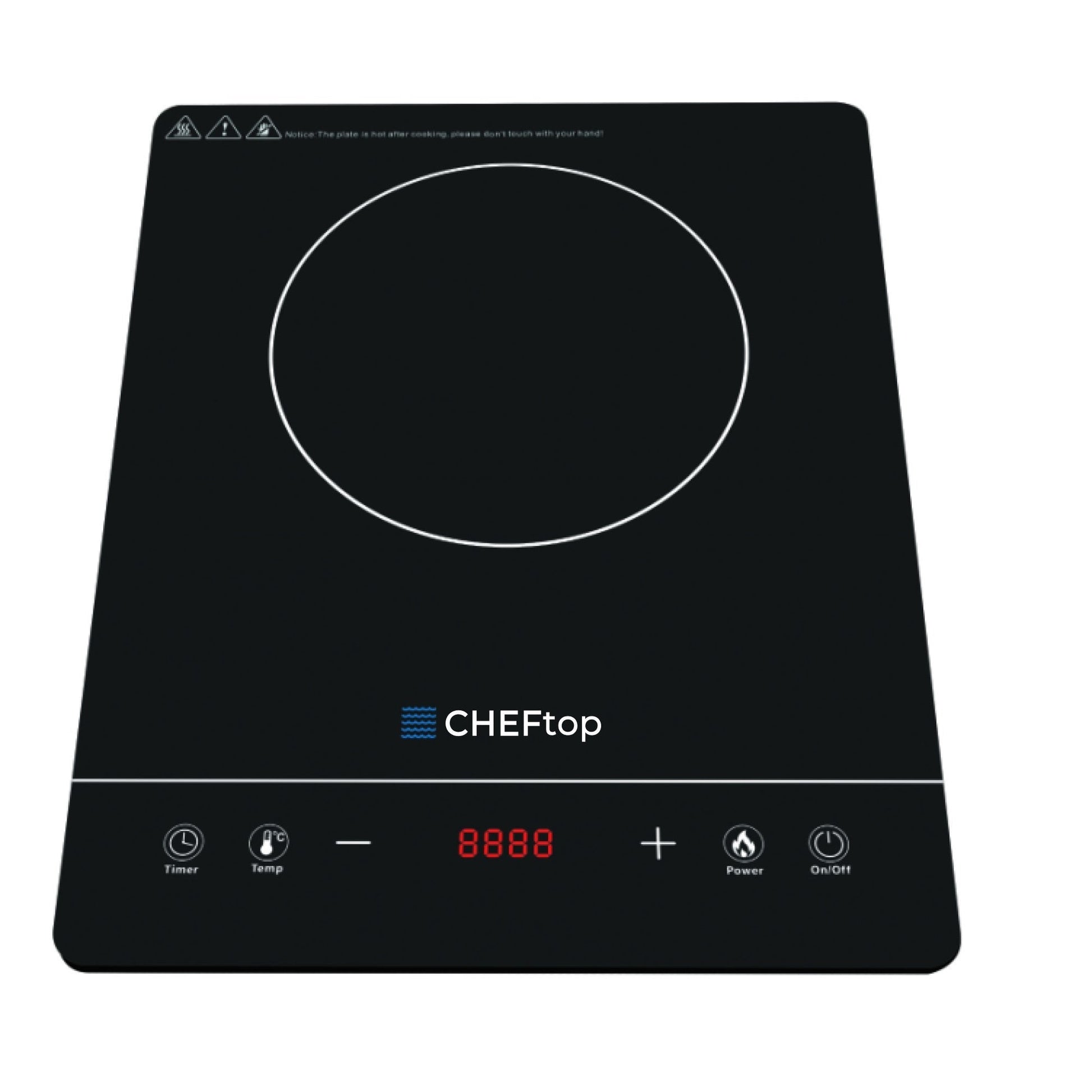 The Cheftop Single Burner Electric Stove Induction Cooktop will give you the utmost cooking flexibility. Induction cooking is 70% more efficient than gas and 20% more efficient than electric and offers more responsive, exceptional temperature control at low and high heats, so it is gentle enough to melt chocolate and powerful enough to boil water. And because heat is generated directly in the cookware, the cooktop stays cooler to the touch, making it safer and easier to clean. Induction elements are compatible with most stainless steel and cast-iron cookware. If a magnet sticks to the bottom of a pot or pan, it is induction friendly. The Cheftop induction cooktop offers the best in contemporary design matched with advanced technology to transform the way you live.