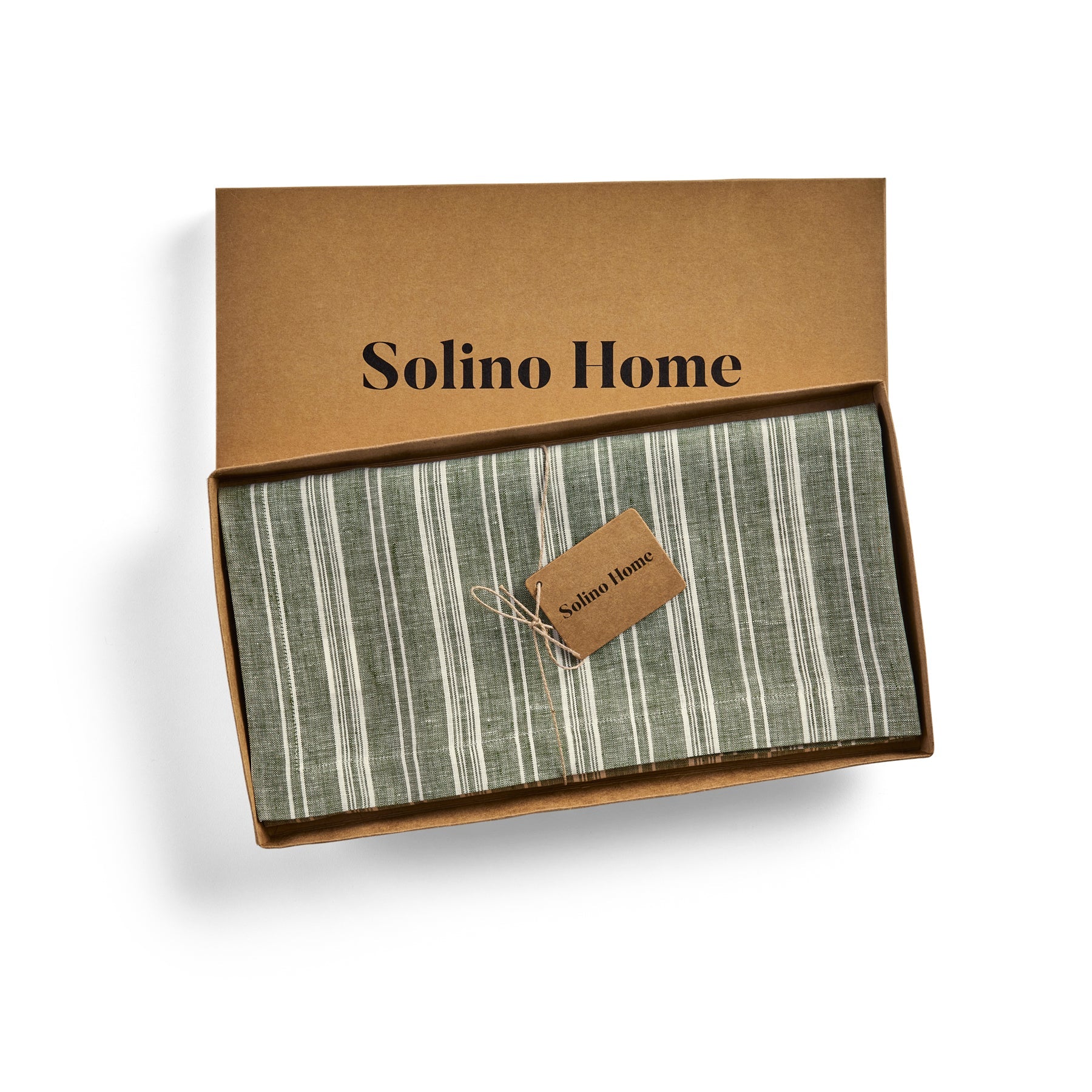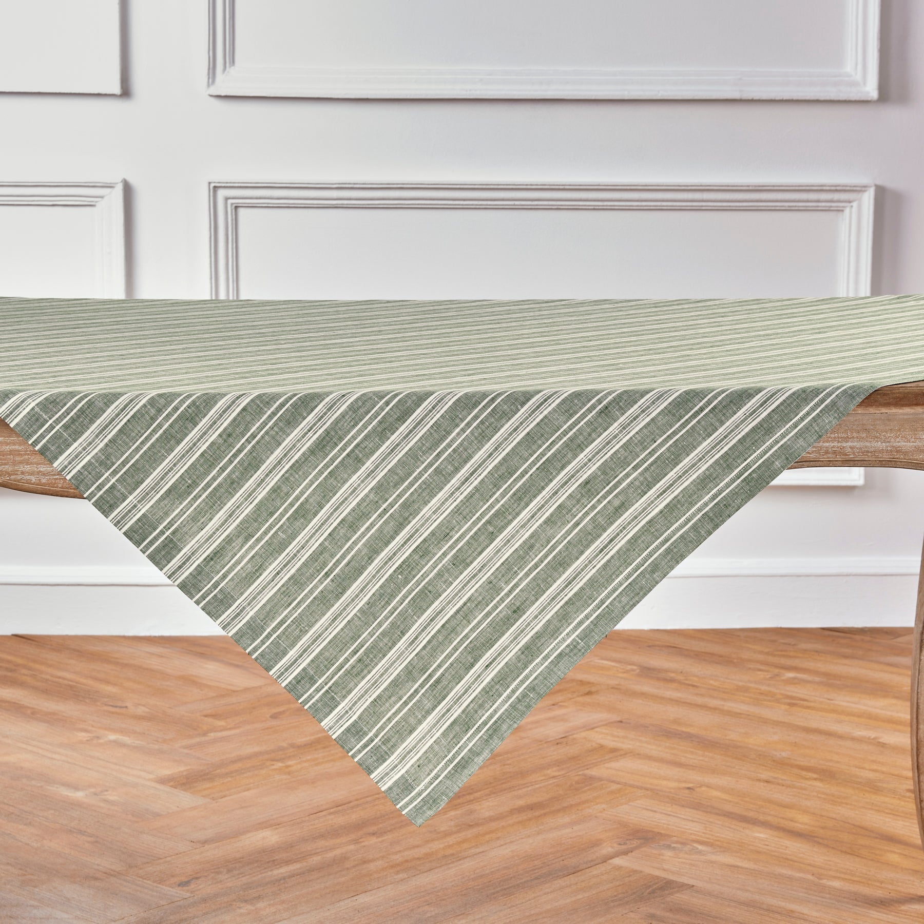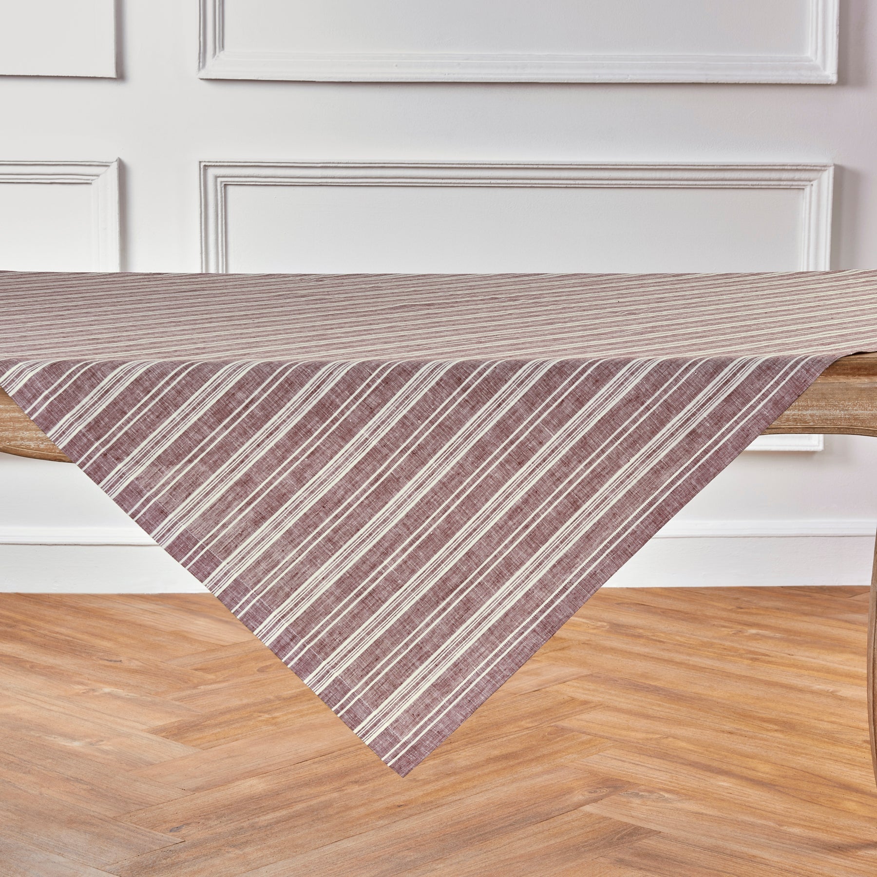 Casual and classic, our Chelsea Stripe collection will be your go-to for indoor, outdoor and al fresco dinner parties, as well as everyday use. The muted tones and lovely texture of 100% pure European linen graces the table with a modern stripe and vintage vibe. You'll love how the timeless style complements both casual and formal dinnerware. For a coordinated look, choose from a tablecloth, placemats, table runner and napkins or mix n' match them with any of solid color collections.