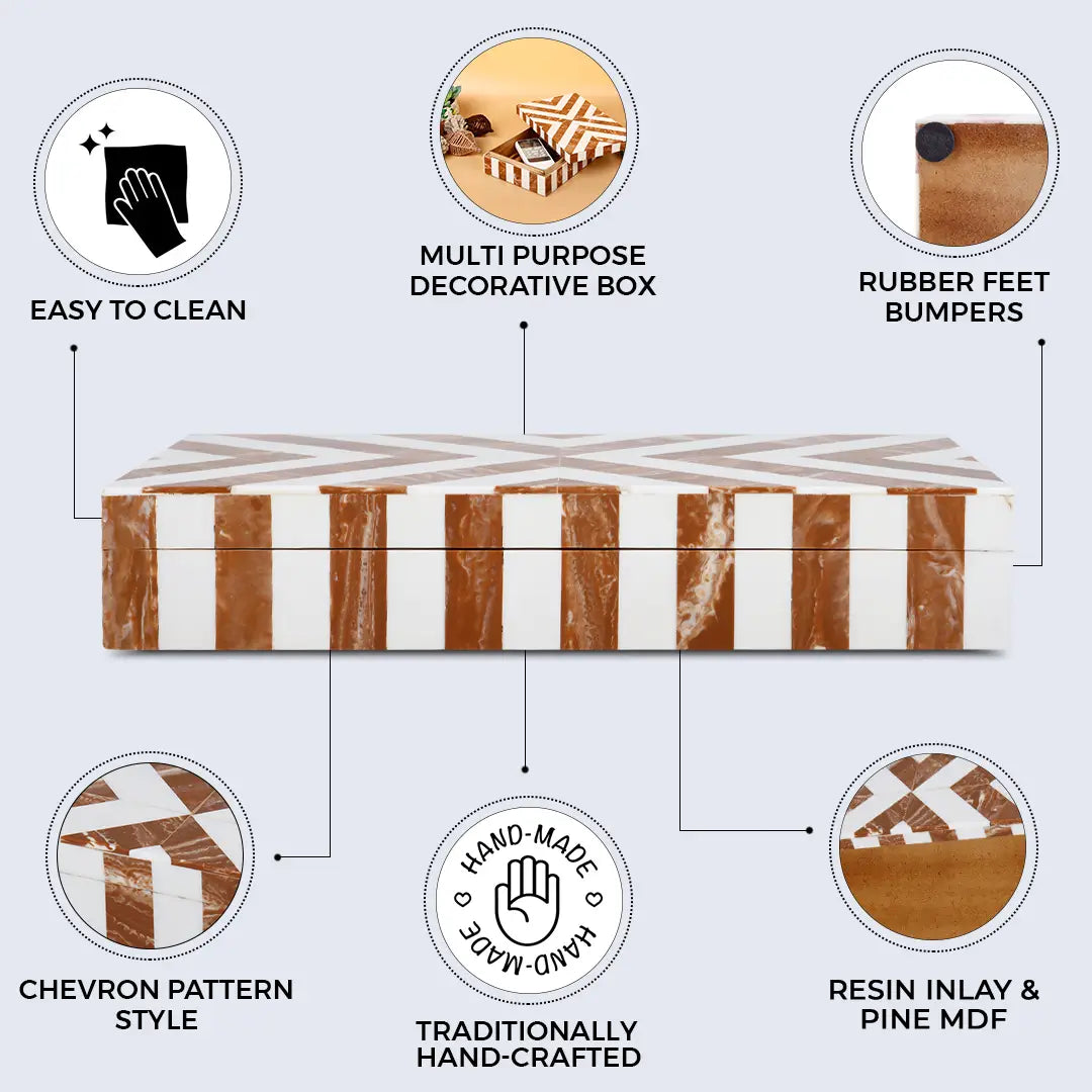 Handicrafts Home Introducing A Chevron Pattern Decorative Storage Boxes, A celebration of bold design and practical Storage. Handcrafted using Bone Inlay and Pine MDF, it's a piece of Art as much as it is a Home Essential.