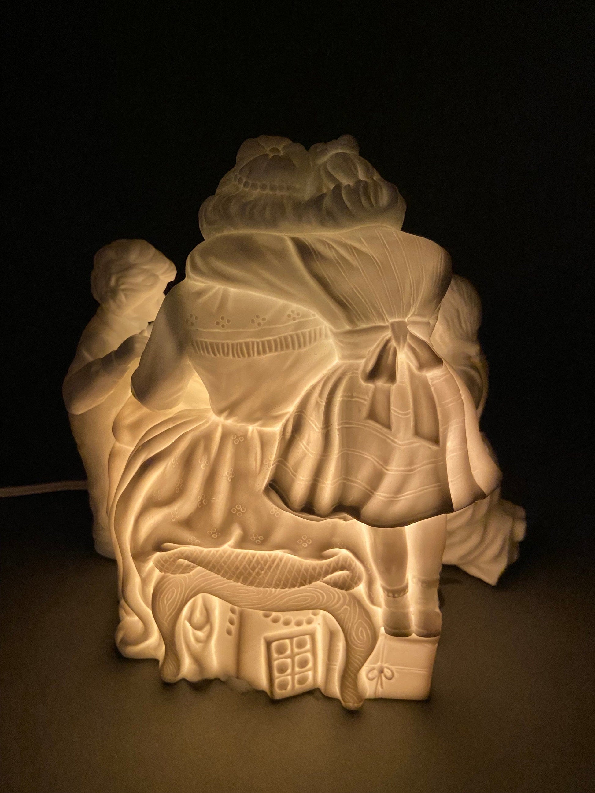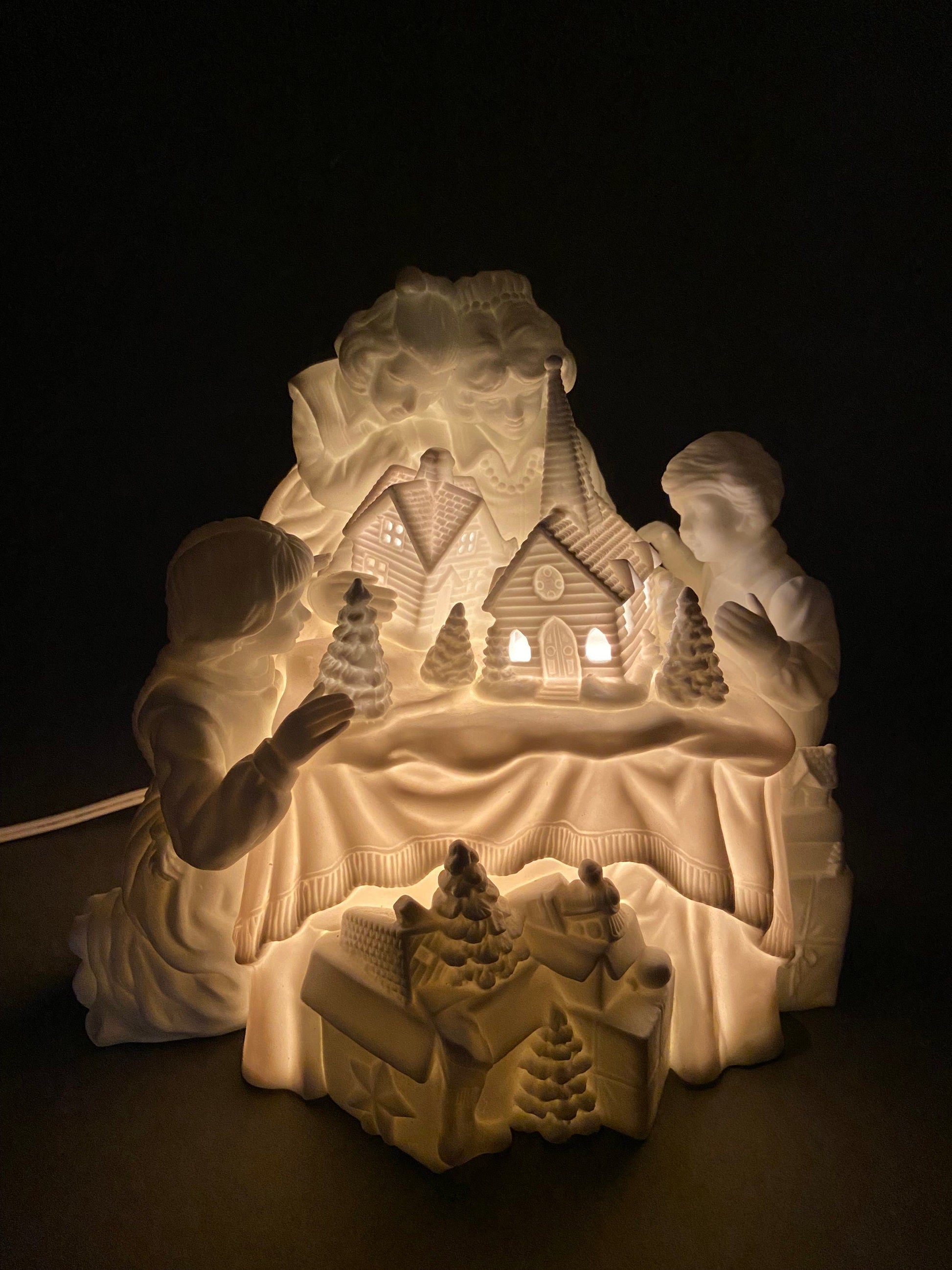 Christmas Accessories by Dept. 56. Family Tradition Winter Silhouette. Illuminated White Porcelain. Family Celebrating Holidays. Incredible Detail. Light Kit Included. Excellent Condition.