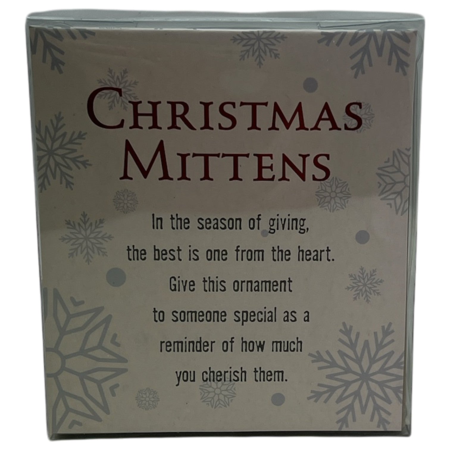 This ornament is more than just a decorative item; it carries a heartfelt message that makes it a wonderful gift to share with someone special. The special message reads, "Christmas Mittens: In the season of giving, the best is one from the heart. Give this ornament to someone special as a reminder of how much you cherish them." This thoughtful sentiment is a beautiful way to remind your loved ones how much they mean to you during this magical time of year.