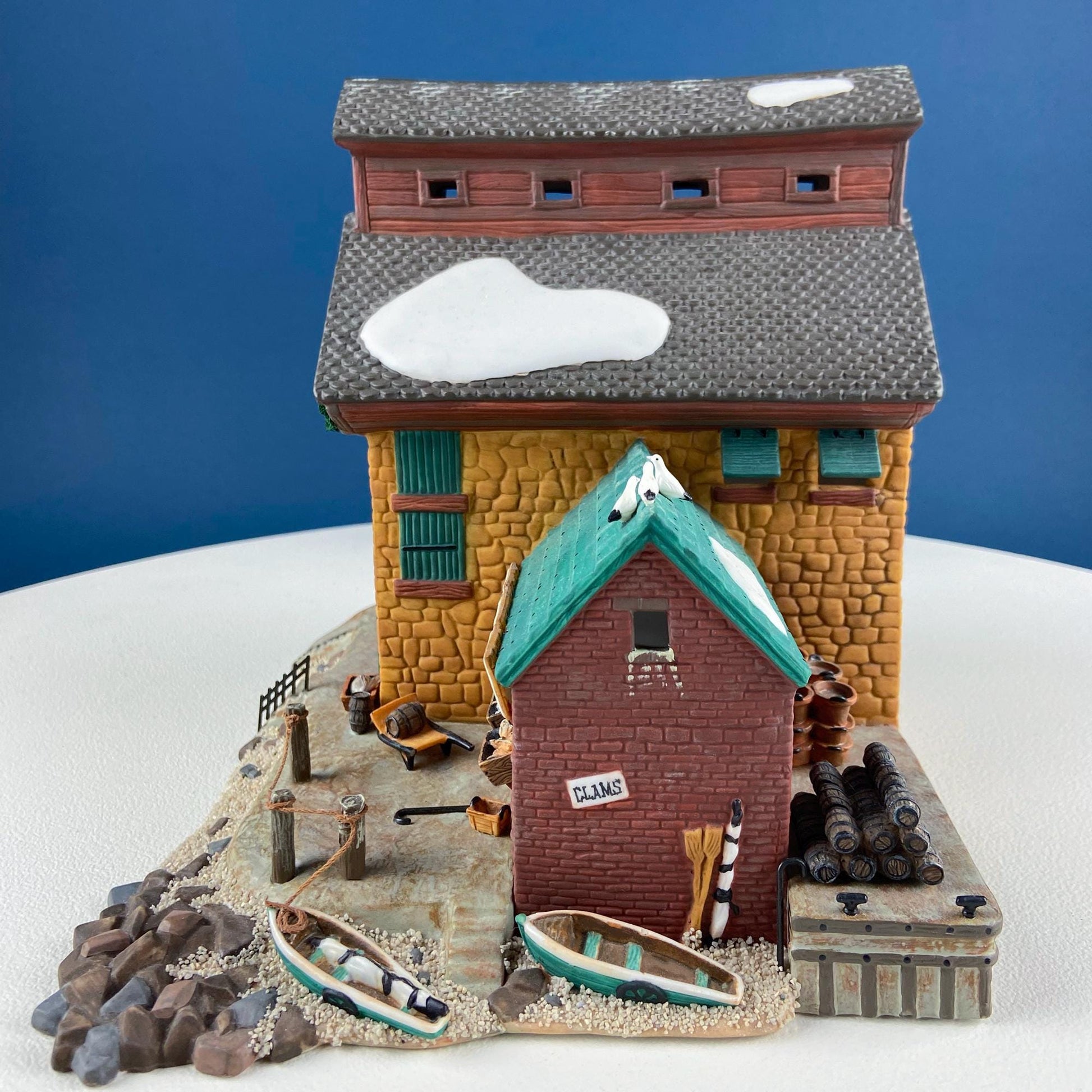 Christmas Village 2 Bldg. Complex North Eastern Sea Fisheries. Illuminated Porcelain Houses. Incredible Hand Painted Detail by Dept. 56.