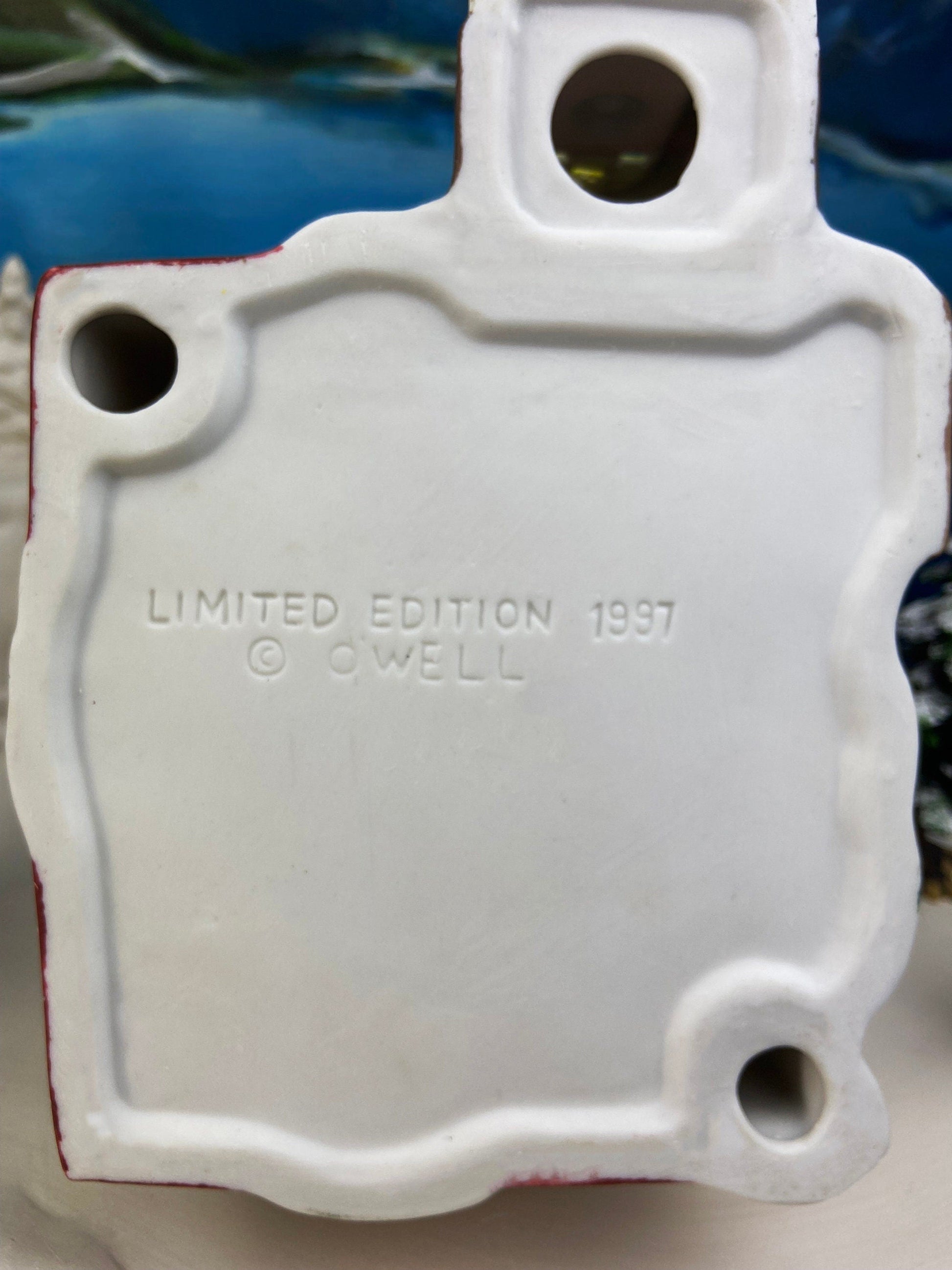 Christmas Village Accessories by O'Well. Illuminated Curiosity Shop. Porcelain Lighted House. Light Kit Included. Additional Free-standing Islands, Trees and Accessories are not Included in price. Good Vintage Condition.
