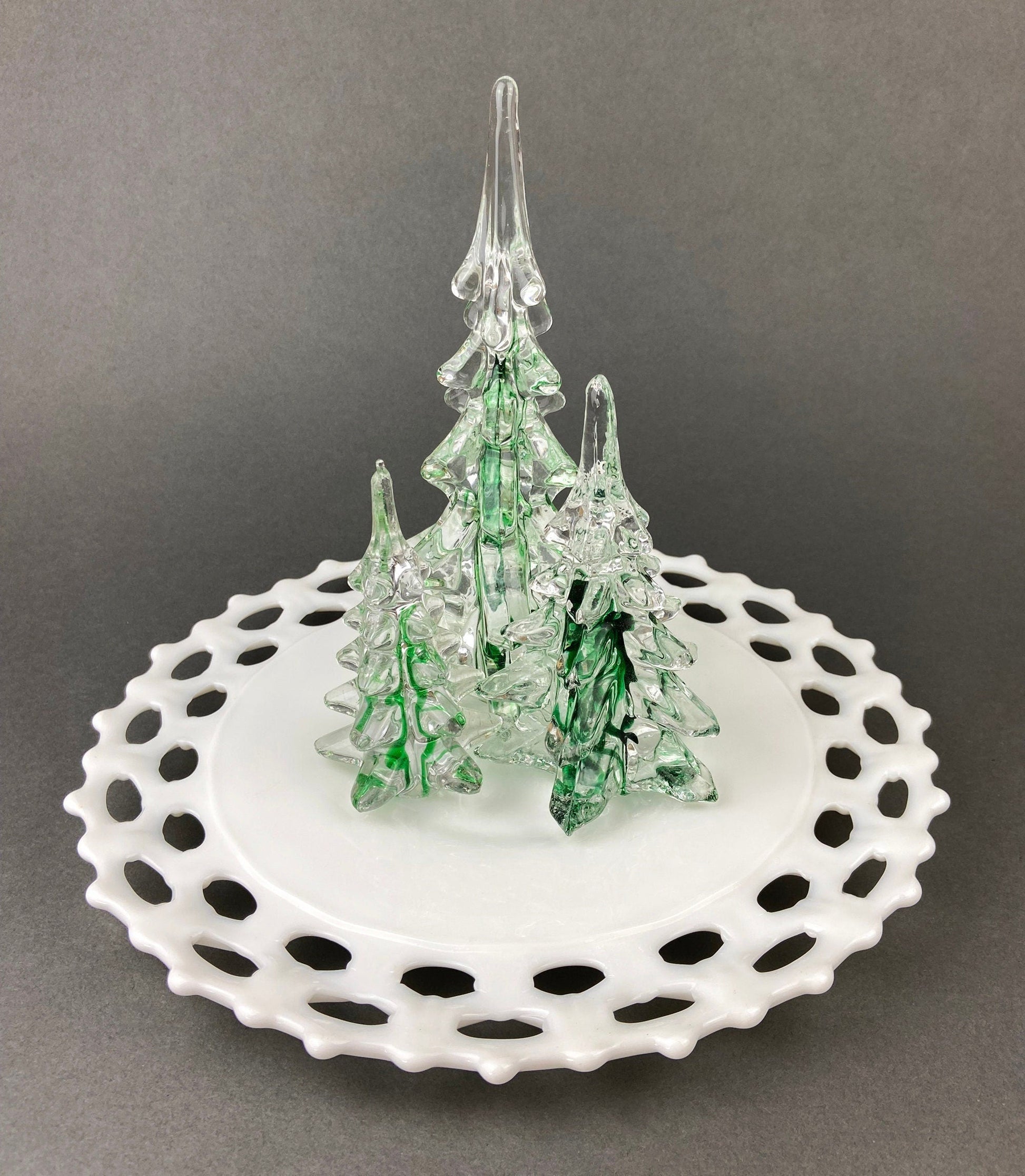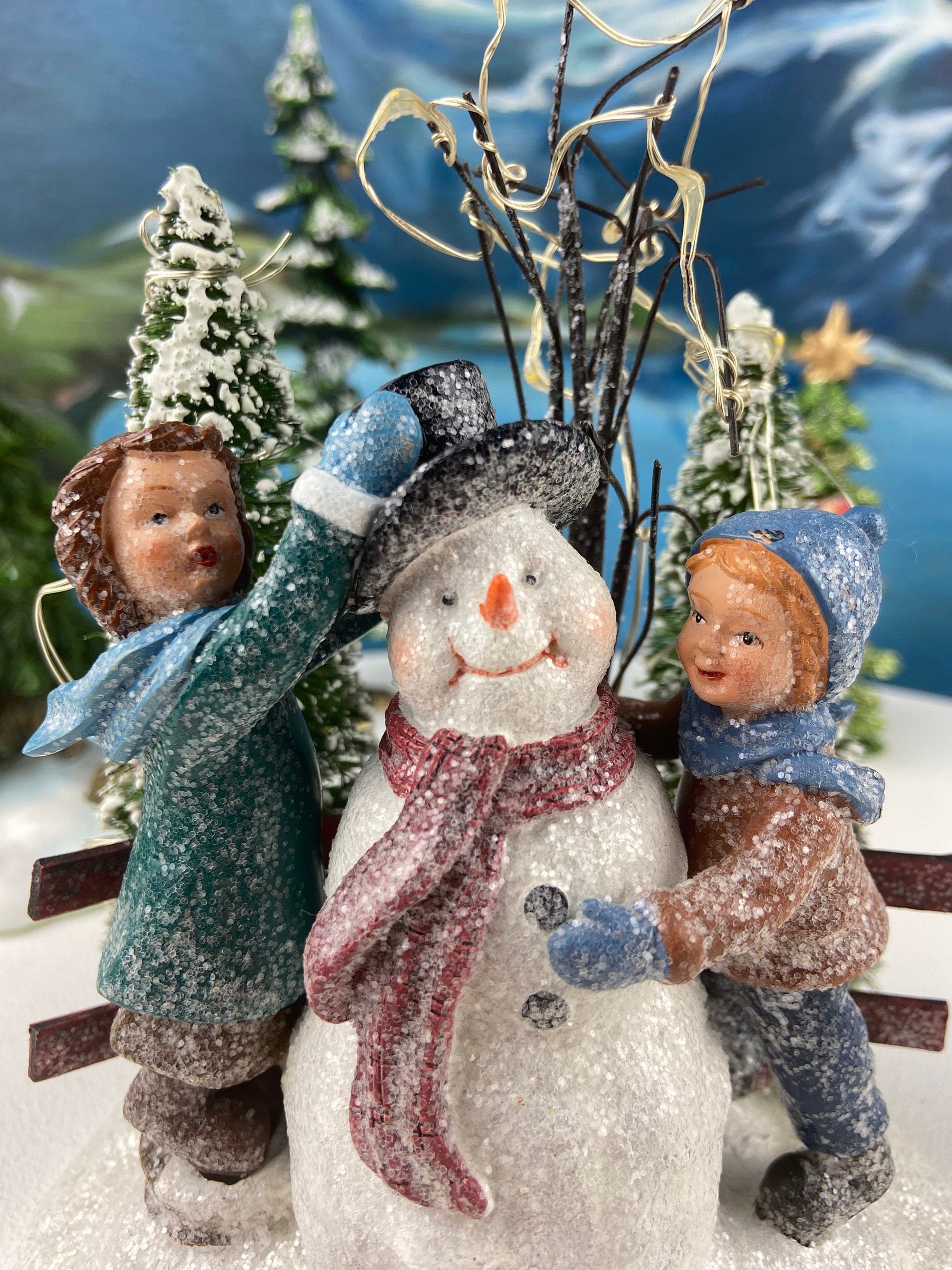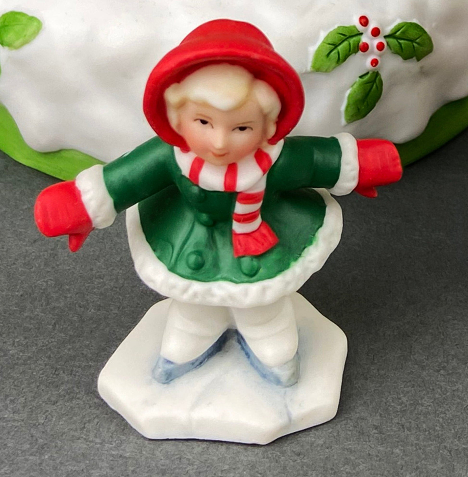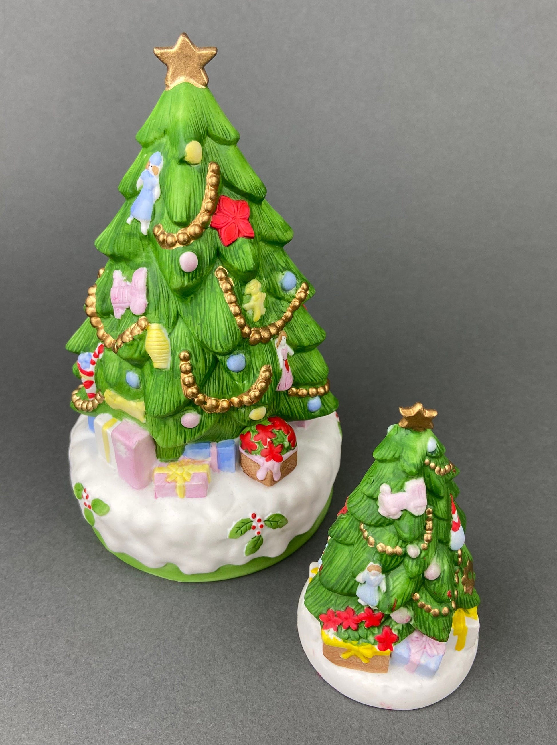 Christmas Village Accessories. Dressed Christmas Trees by Nikko, Korea. Girl Figurine by Lefton. Set of Two Trees and Little Girl.