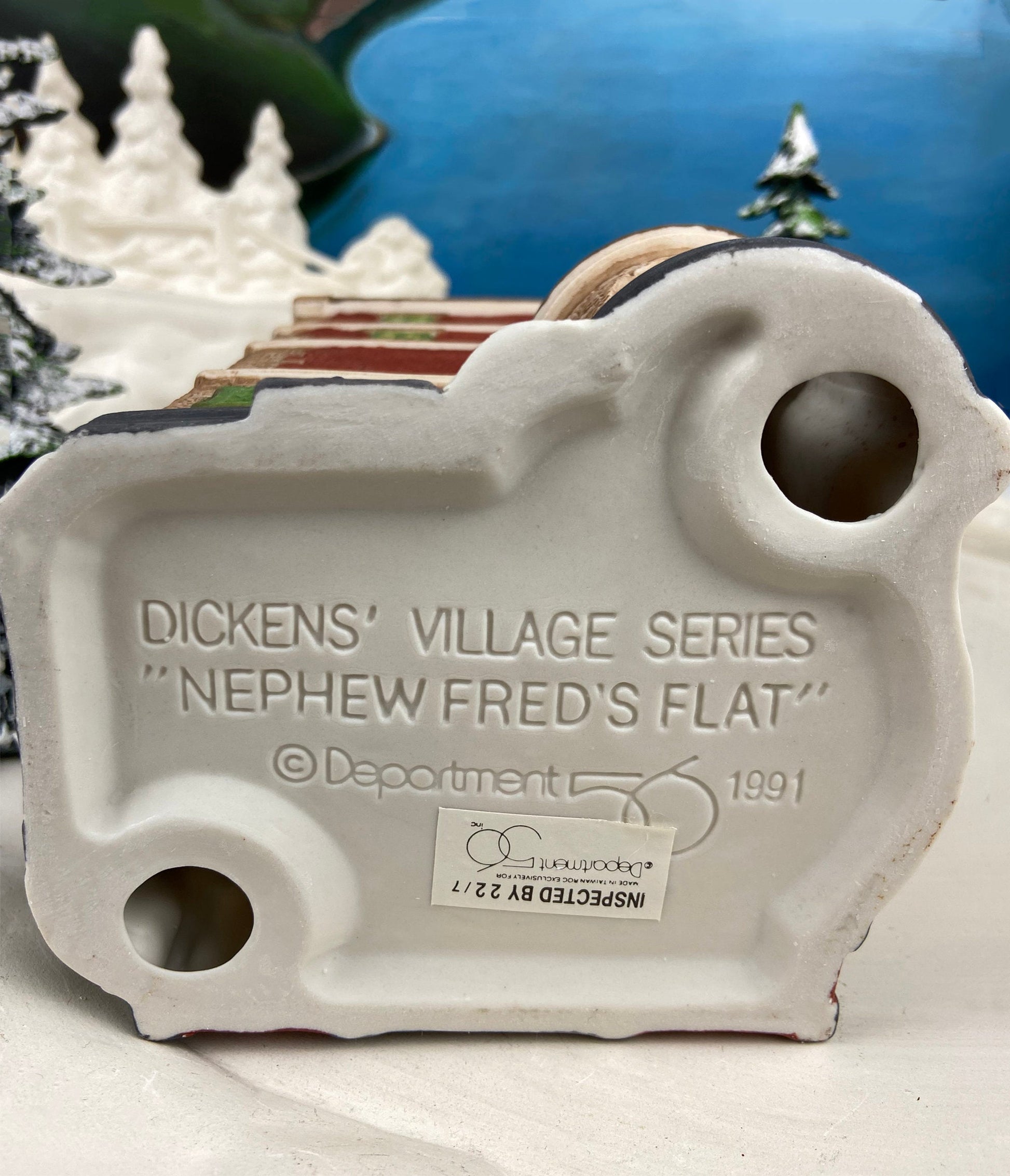 Christmas Village House by Dept 56. Illuminated Nephew Fred's Flat. Dickens Village Series. Christmas Diorama. Holiday Celebration.
