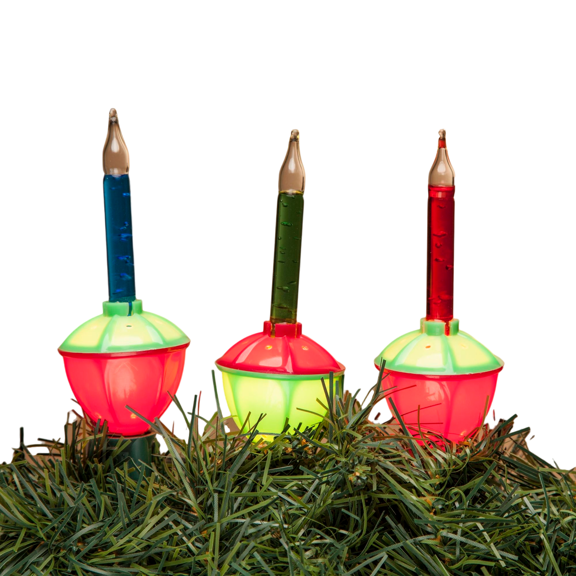 Each light in the set is designed to bubble cheerfully when warmed, creating a mesmerizing and playful ambiance reminiscent of vintage holiday decor. The multi-colored lights, securely encased in charming bubble enclosures, add a vibrant touch to your decorations.