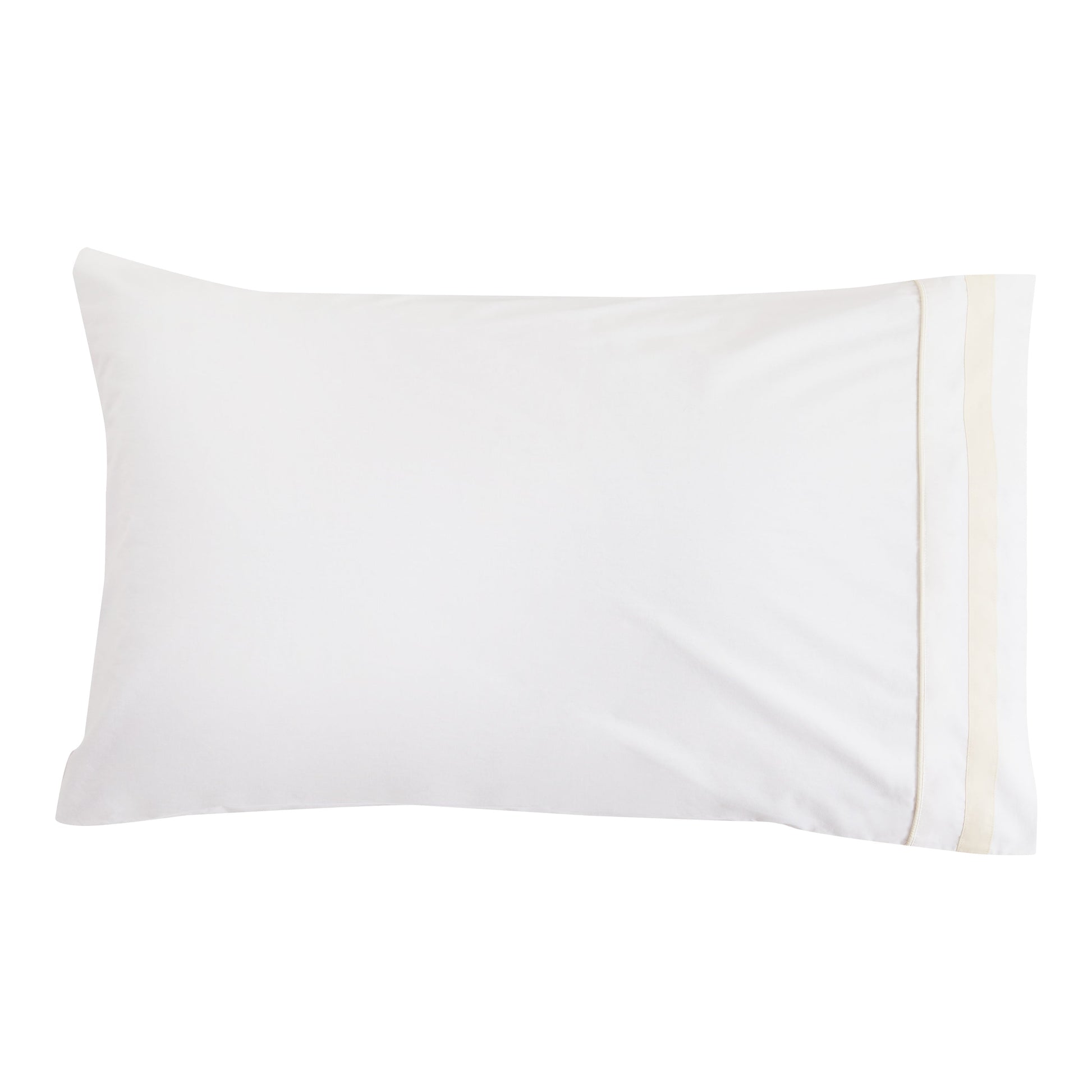 We weave our Percale sheets by laying one warp thread over one weft thread in a one-to-one ratio. This produces a sheet with a matte finish that is soft yet durable, crisp and cool to the touch. We added a tailored band and piping to the edge for sophisticated luxury and style.