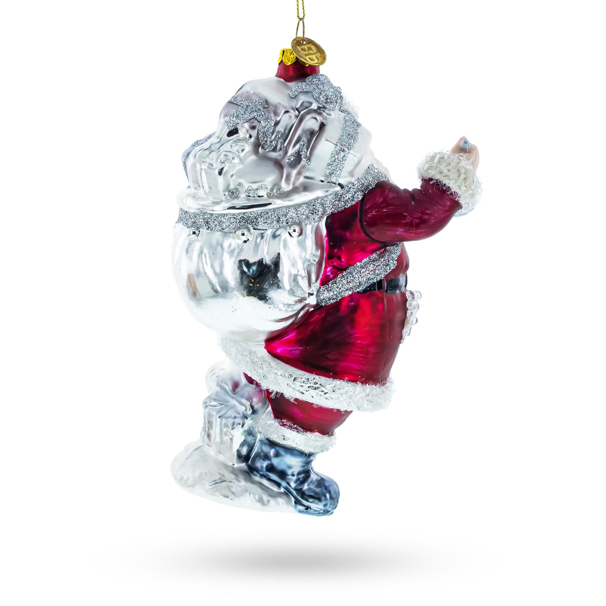 Classic Santa Claus Holding Bell Glass Christmas Ornament
